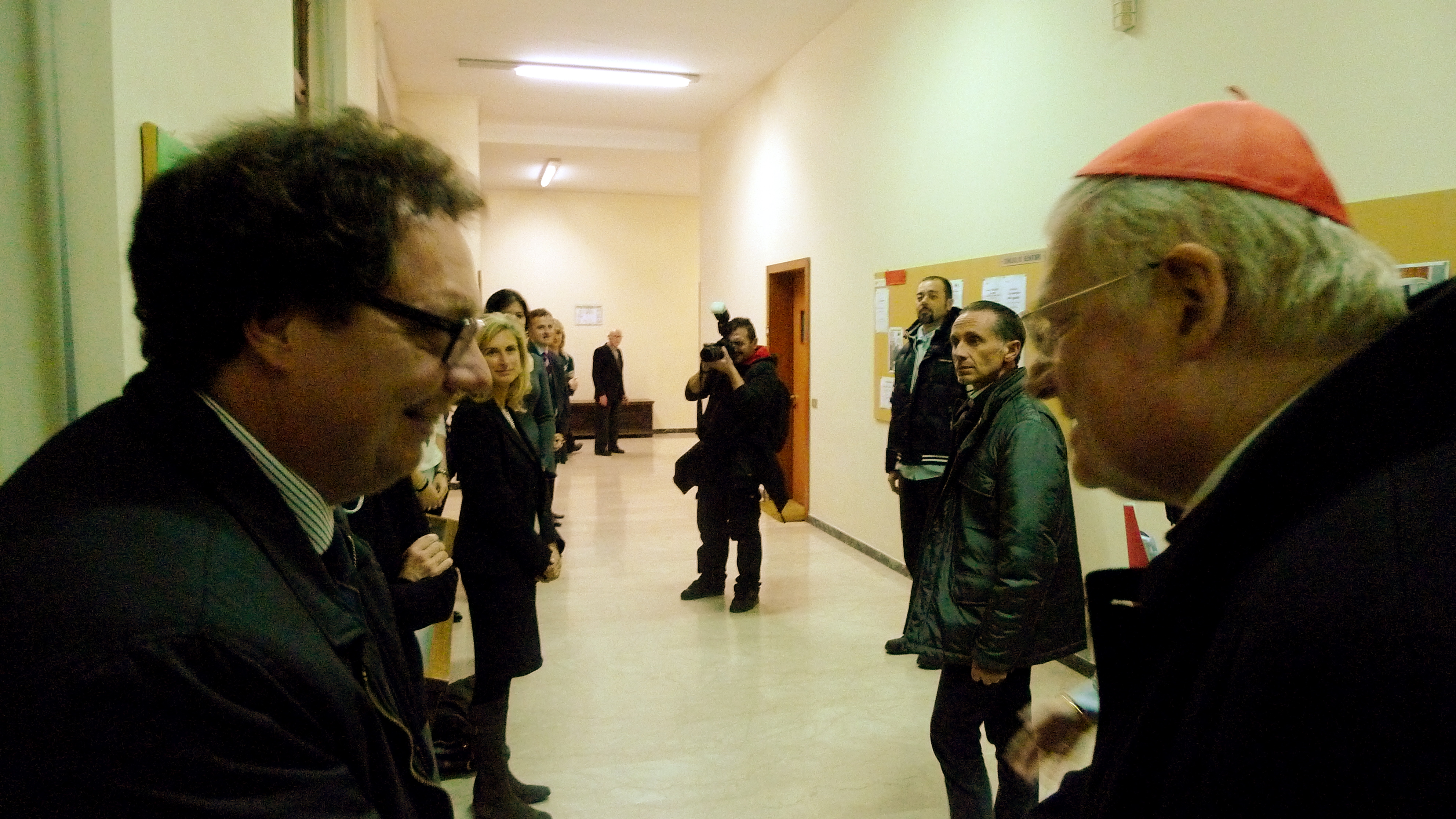 L’8 novembre scorso il Consiglio riunito ha dato il benvenuto all’Arcivescovo di Milano, Sua Em.za il Cardinale Angelo Scola, in visita al Leone XIII per l’incontro coi Consigli Pastorali della Zona I. L’Arcivescovo ha rivolto un caloroso saluto a tutte le componenti, con la promessa di tornare presto per un più ampio incontro con tutti gli studenti del Leone. Il Rettore della scuola, professoressa Gabriella Tona, ha donato all’Arcivescovo un disegno fatto da un giovanissimo studente, e tre recenti documenti sull’educazione ignaziana: il Progetto Pastorale dei Collegi dei Gesuiti d’Italia, il documento programmatico Il nostro modo di procedere, e il testo di un nostro docente, il professor Luca Diliberto, intitolato L’arte dell’incontro.