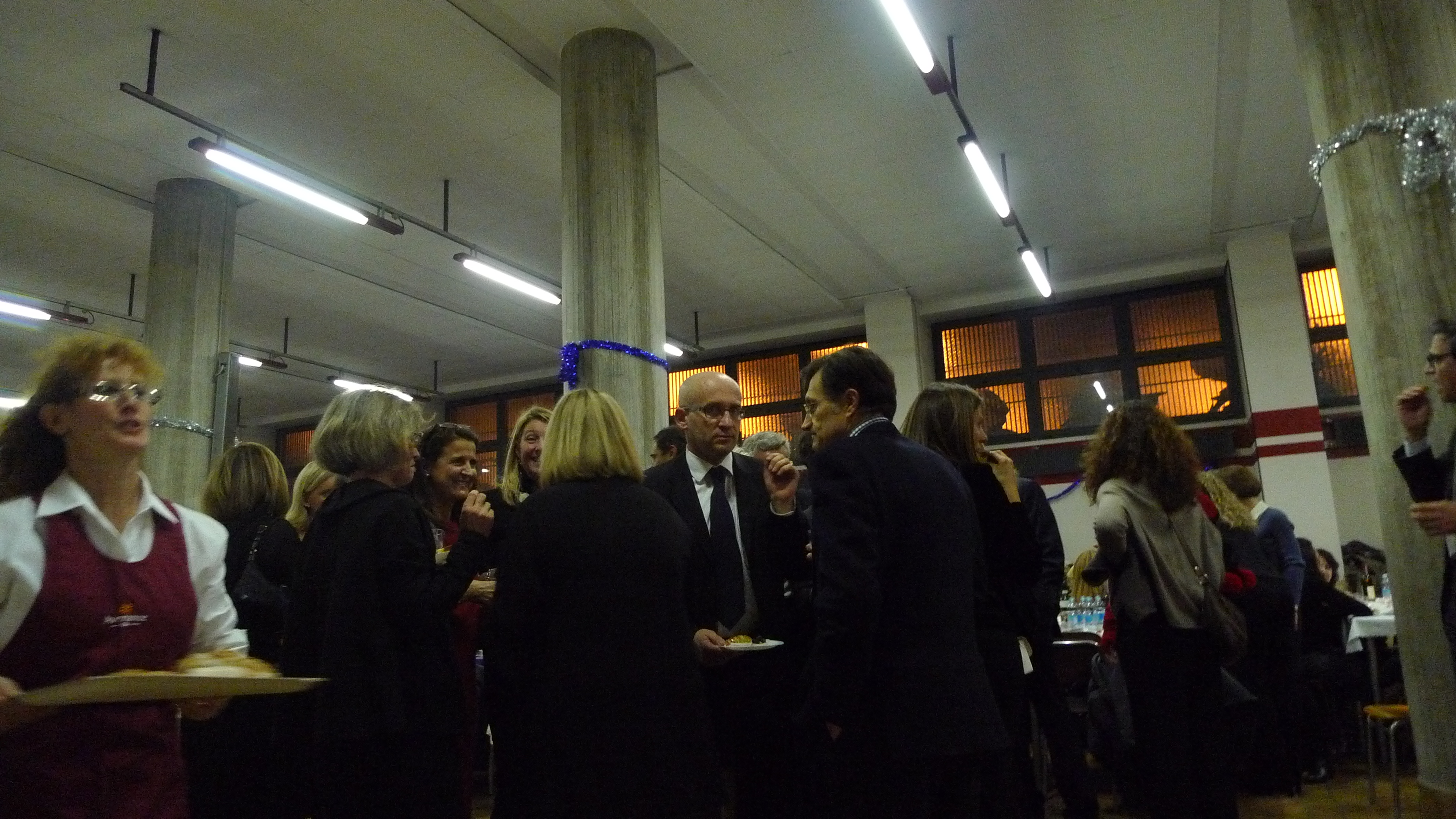 Dopo l’Eucarestia tutti i presenti si sono spostati all’interno della scuola per il tradizionale buffet degli auguri natalizi, che ha registrato l’adesione record di 1.200 persone tra studenti e famiglie.