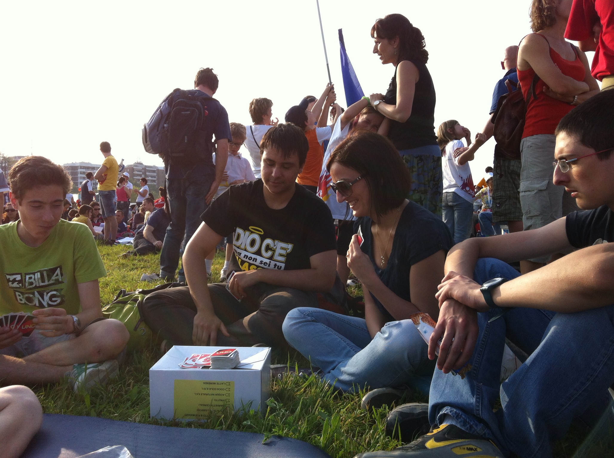 Giugno 3, 2012 Categoria: News, Home pageSabato 2 giugno un drappello di Liceali del Leone ha partecipato alla “serata delle testimonianze” che si è tenuta al campo volo di Bresso alla presenza del Santo Padre. Accompagnati dalla professoressa Bondi e da padre Cacchione, i ragazzi e i loro professori sono rimasti poi a Bresso a dormire, in modo da poter assistere in prima fila alla Santa Messa della mattina presieduta dal Pontefice. Seppur sistemati in maniera molto spartana, i nostri studenti hanno passato ore di grande gioia, in comunione con le migliaia di persone convenute a Bresso.