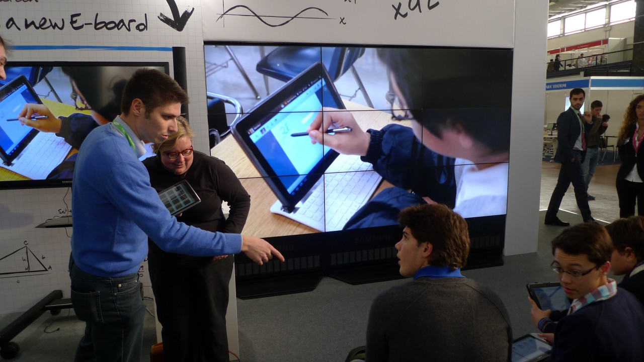 Mentre scriviamo, si trovano a Genova alla fiera “ABCD, educazione e orientamenti”, la più grande fiera per l’innovazione didattica in Italia. Sono stati scelti per dimostrare le potenzialità dei tablet come strumento educativo presso gli stand della Samsung e dell’agenzia di ricerca INDIRE del Ministero della Pubblica Istruzione. Le professoresse Helms e Biella hanno preparato delle lezioni appositamente pensate per essere ad un tempo vere e proprie lezioni, come se si fosse in classe al Leone svolgendo il programma regolare, e dimostrazioni della “cloud school” con il tablet, capace di mettere in atto una didattica davvero rivoluzionaria nella direzione del coinvolgimento, della collaborazione e della creatività di insegnanti e studenti per un apprendimento più interiorizzato e più efficace.