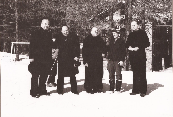 Un’immagine storica a Gressoney St. Jean: da sin. i padri Tremolada e Pretto, fr. Bortolon, i padri Bonvicini e Besana.