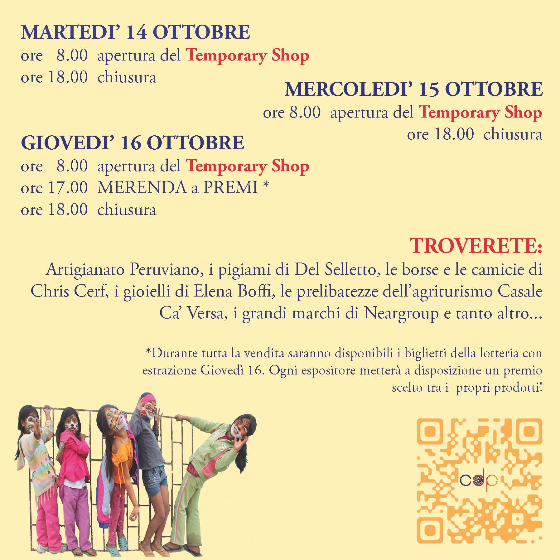 Ottobre 12, 2014 Categoria: News, Home pagePresso gli atri dell’Istituto, da martedì 14 ottobre a giovedì 16 ottobre, dalle 8:00 alle 18:00 (con orario continuato), torna il temporary shop a sostegno della Casa Famiglia C.A.E.F. (Centro De Atencion y Educacion a la Familia) in Perù, dove ogni anno 30 giovani volontari della Lega Missionaria Studenti si recano per prestare servizio ai bambini che vi risiedono.