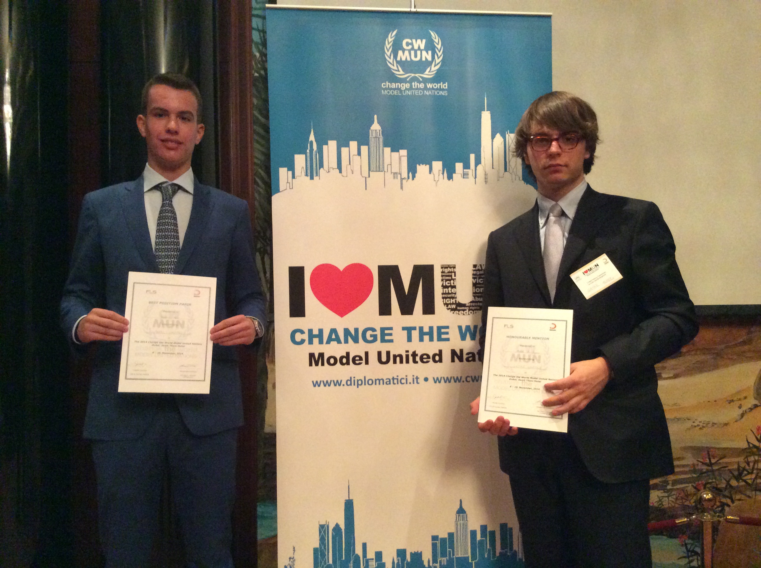 Il risultato e’ stato davvero soddisfacente: dopo un momento di scoramento e confusione, tutti i delegati si sono rimboccati le maniche e si sono messi al lavoro. I Leoniani non sono stati da meno, tanto che oggi, durante la cerimonia conclusiva, abbiamo ricevuto due premi significativi: un best position paper per Giacomo Mazzi della 3 scientifico B e la honourable mention per Michele Zanfagna della 4 scientifico B. Congratulazioni ragazzi, siete stati davvero bravi!