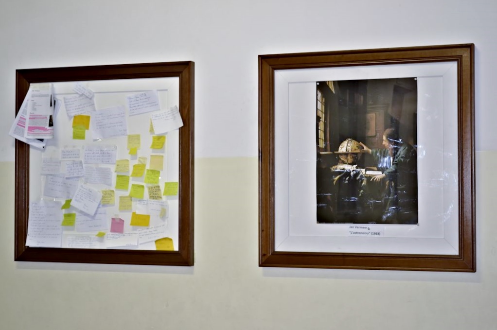 Due le cornici a disposizione: una per il quadro e una per i messaggi. Ogni volta sono tantissimi i foglietti: alcuni sembrano scritti da veri critici d’arte, ma tutti sono interessanti.