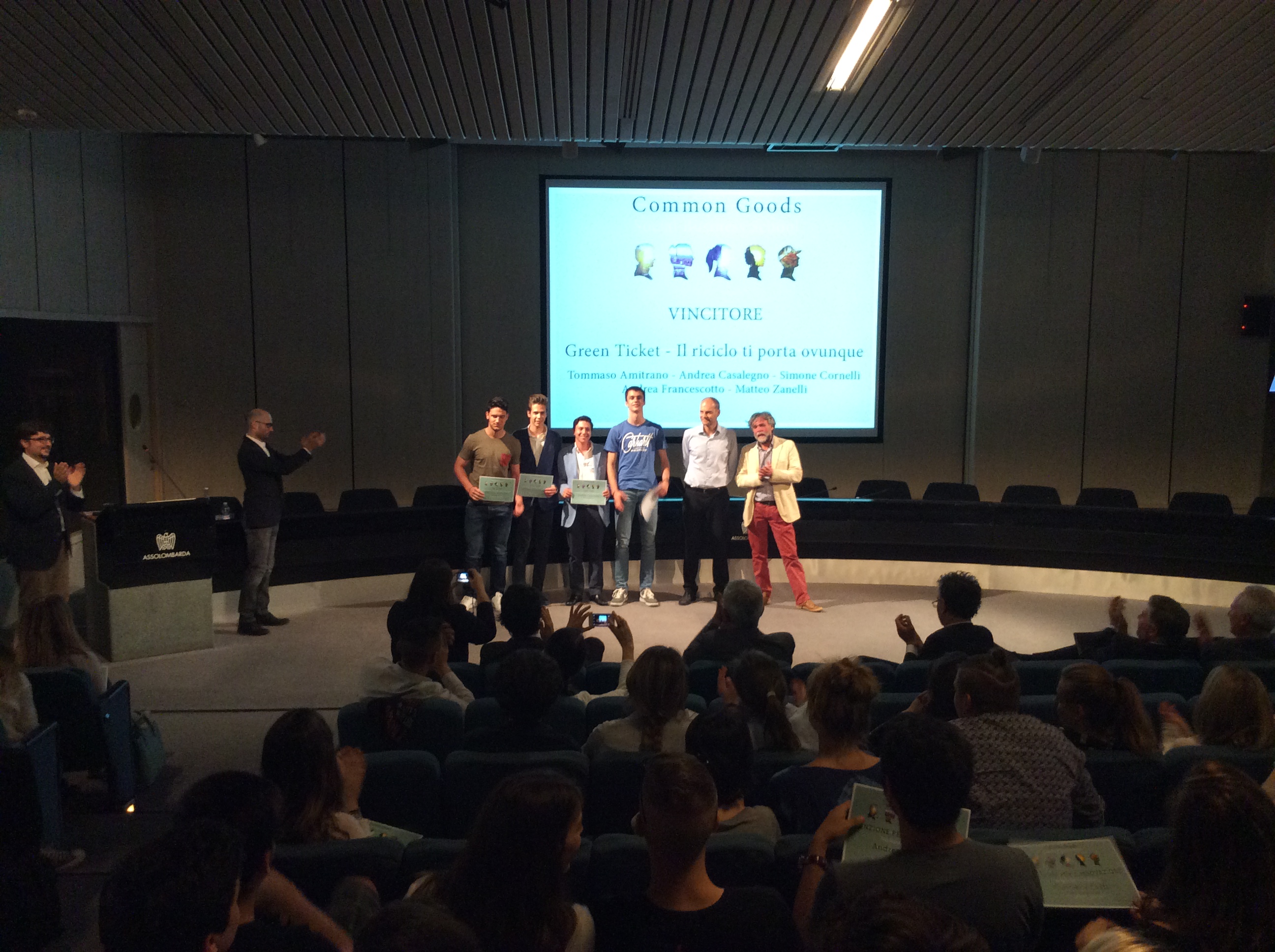 La squadra vincente si chiama Green Ticket ed è composta da Tommaso Amitrano, Andrea Casalegno, Simone Cornelli, Andrea Francescotto e Matteo Zanelli, nella foto qui a fianco insieme al loro formatore Luca Quaratino e a Francesco Morace, Presidente di Future Concept Lab e ideatore del Festival della Crescita, un campus di idee e innovazioni a cui i nostri ragazzi vincitori saranno invitati il prossimo ottobre.