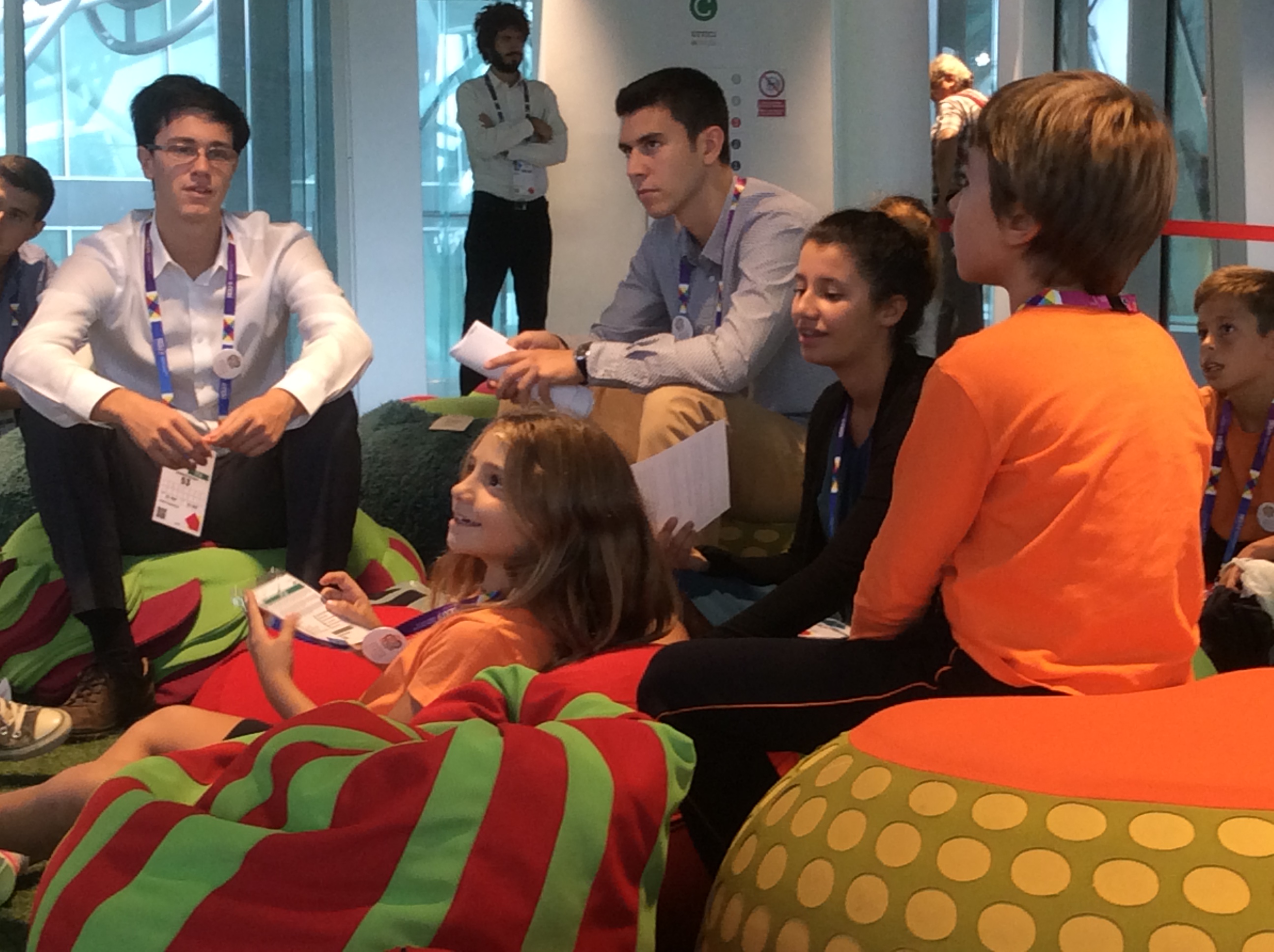 Tra le 15:00 e le 16:30 una delegazione di 15 tra docenti e, soprattutto, studenti del Leone ha gestito lo spazio “Corner Scuole”, che, in base al protocollo di intesa siglato tra il MIUR ed EXPO 2015, vuole mostrare al pubblico il valore progettuale espresso da studenti e docenti sulle tematiche di EXPO 2015.