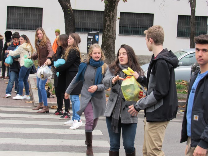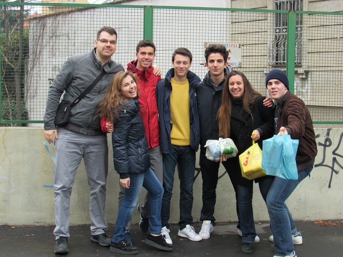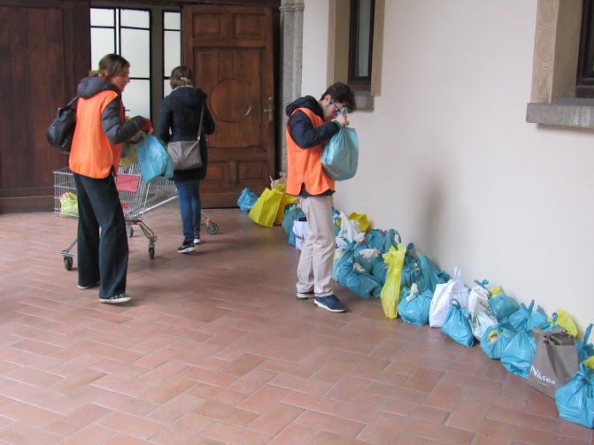 Conclusa la S. Messa, studenti e docenti dei Licei, con l’aiuto prezioso di tanti genitori, fianco a fianco, hanno fatto passare i viveri, sacchetto dopo sacchetto, fino a destinazione.