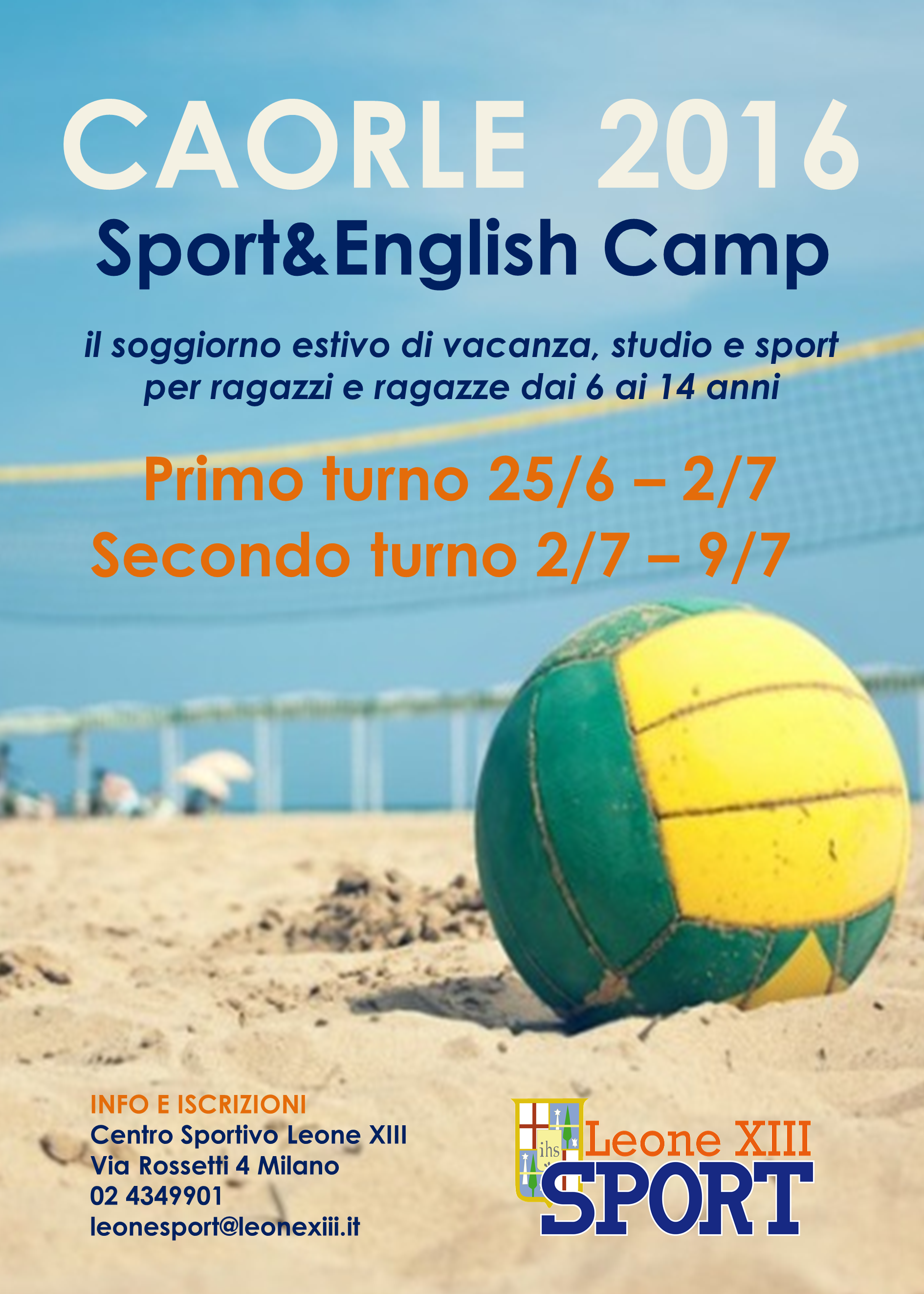 Marzo 16, 2016 Categoria: News, Home pageSi sono aperte il 15 marzo le iscrizioni per partecipare ai soggiorni estivi di Caorle e Gressoney St. Jean e al Pre-School Multisport Camp di settembre al Leone XIII. Le proposte si rivolgono a ragazzi e ragazze, Leoniani e non, in età compresa tra i 6 e i 14 anni.