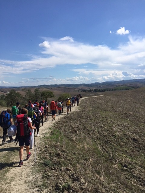 Zaino in spalla, al ritmo di 25-30 chilometri al giorno, gli impavidi pellegrini, accompagnati da padre Diego e dalle professoresse Capello e Muzzio, da Lucca si stanno avvicinando a Siena, passando per località incantevoli come San Miniato e Rocca Val d’Elsa.