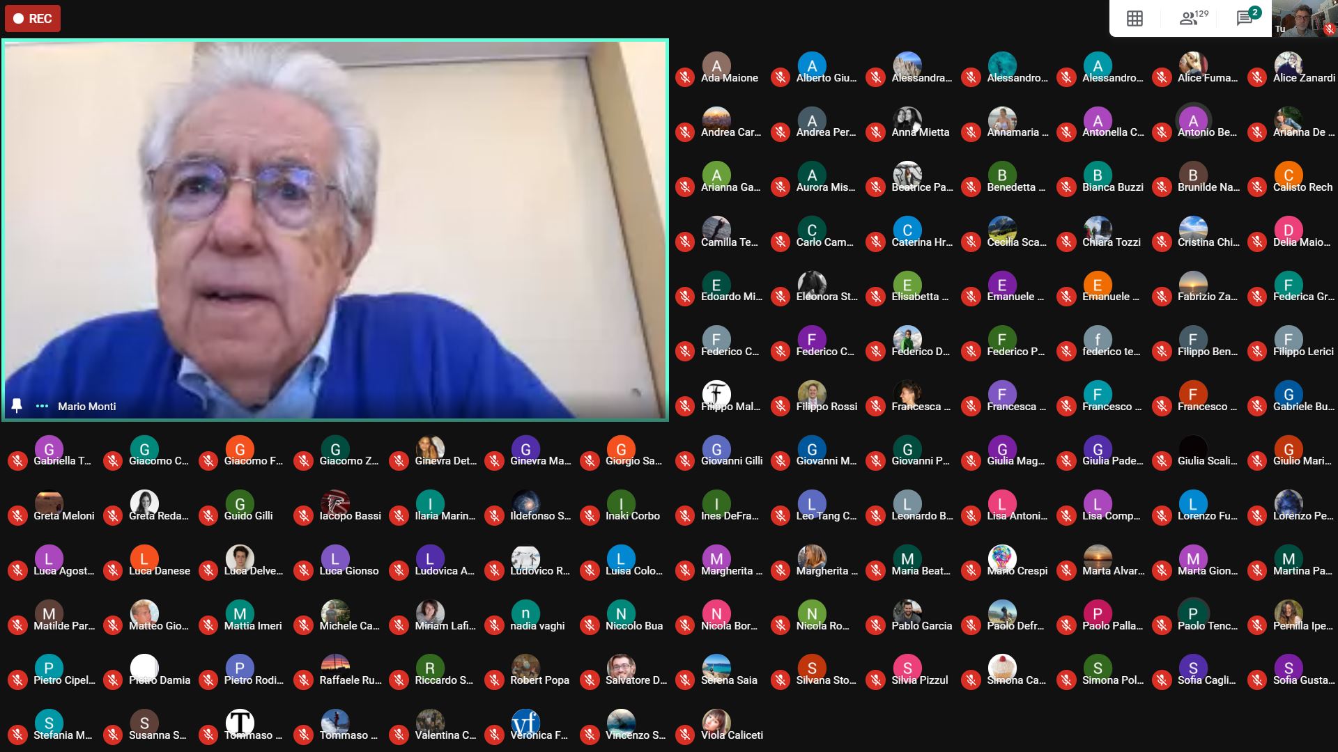 Sabato 9 maggio abbiamo scelto di ricordare l’Europa e la sua prima attuazione concreta nella CECA, forti anche della suggestiva occasione del suo settantesimo anniversario. Abbiamo chiesto aiuto al nostro ex alunno, senatore a vita, prof. Mario Monti, che ha cercato di risvegliare nei nostri giovani un’idea costruttiva di Europa, partendo da Schuman e da Monnet, e passando attraverso gli attualissimi esempi dell’approvazione del MES all’Eurogruppo del giorno prima e delle discusse dichiarazioni della Corte Costituzionale di Karlsruhe all’inizio della settimana. Ieri e oggi ricollegati ad arte, in un’intensa mezz’ora online, corredati da altri 90 minuti di domande a raffica dei nostri liceali. Una bella mattinata di scuola, di Europa, di educazione permanente anche per i molti adulti che erano connessi e che hanno accettato di stare nelle retrovie, lasciando tutto lo spazio ai giovani nella discussione.