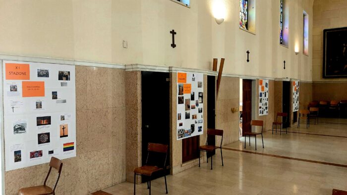 Dopo una presentazione storica e culturale della tradizione della Via Crucis, ad ogni classe è stato chiesto di “adottare” una stazione e di verificare come gli eventi evangelici si attualizzano nella loro esistenza.