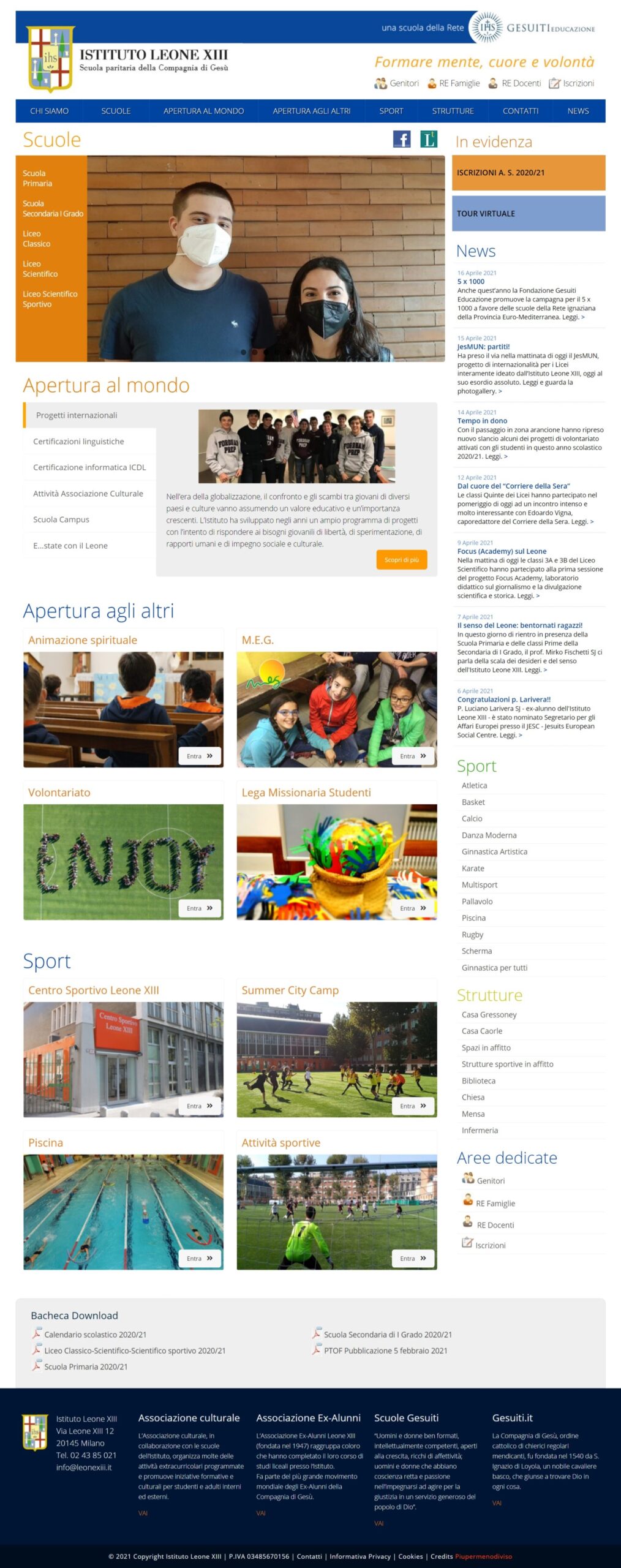 in questo fine settimana siamo passati alla nuova versione del sito www.leonexiii.it. È una versione che speriamo vi giunga più fresca, più leggera e più leggibile, anche nella sua versione mobile. Al tempo stesso si è cercato di non perdere di vista quello “spessore”, come direbbe fr. Stella, che orienta la nostra attività educativa, anche nella sua componente comunicativa sul web e sui canali social.