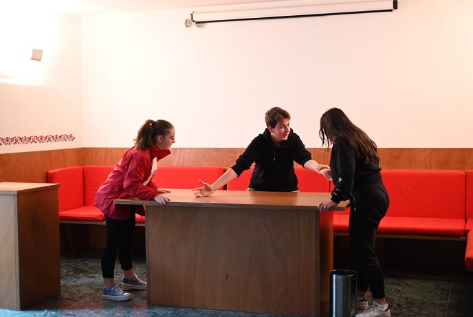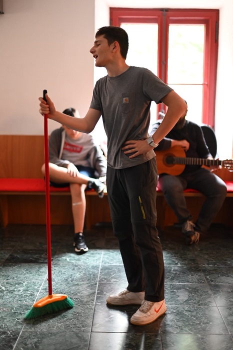 Alla fine del soggiorno questi magnifici “attori” si sono cimentati in una lezione aperta, nella quale hanno condiviso con i compagni che hanno seguito il progetto “Montagna e Sfide” il risultato della loro generosa partecipazione: hanno montato una breve performance basata sull’improvvisazione, calandosi nei personaggi e nella vicenda menandrea.