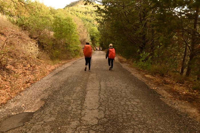 Macinando tra i 20 e i 30 chilometri al giorno, abbiamo avuto l’opportunità di riflettere molto, sia durante momenti personali e individuali, sia insieme ad amici e compagni. Camminando da soli si potevano gustare i dettagli di ciò che ci circondava, il ritmico rumore dei passi, i respiri talvolta affannosi, lo sciabordio dell’acqua nella borraccia, il fruscio delle chiome degli alberi e i pensieri più intimi, suggeriti dal tema del giorno.