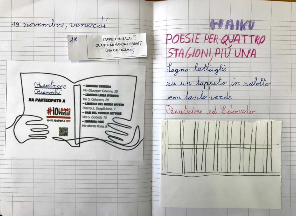 In occasione di #IOLEGGOPERCHÉ continuano i laboratori di lettura e scrittura creativa alla Scuola Primaria: haiku, letture ad alta voce, formule magiche per diventare lettori più consapevoli, illustrazioni e recensioni dei libri del cuore e tanto altro.
