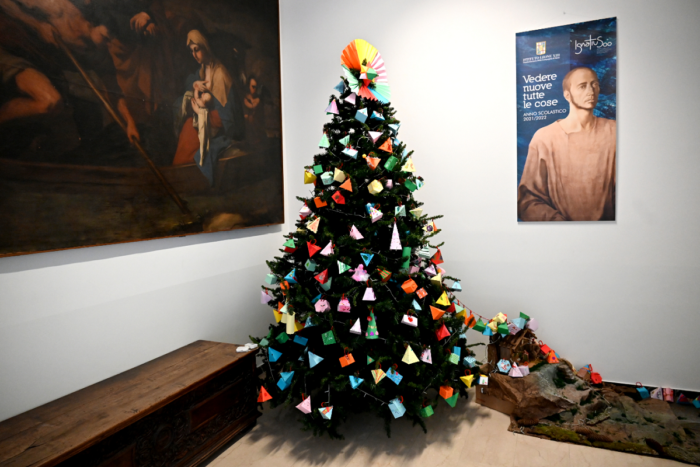 La ricchezza della nostra singolarità umana, unica e irripetibile, viene espressa dagli addobbi realizzati dagli studenti della Scuola Media per il tradizionale albero di Natale: forme geometriche diverse, decorate e abbellite in modo personale, concorrono insieme, in dialogo, in unione, alla grande bellezza corale.