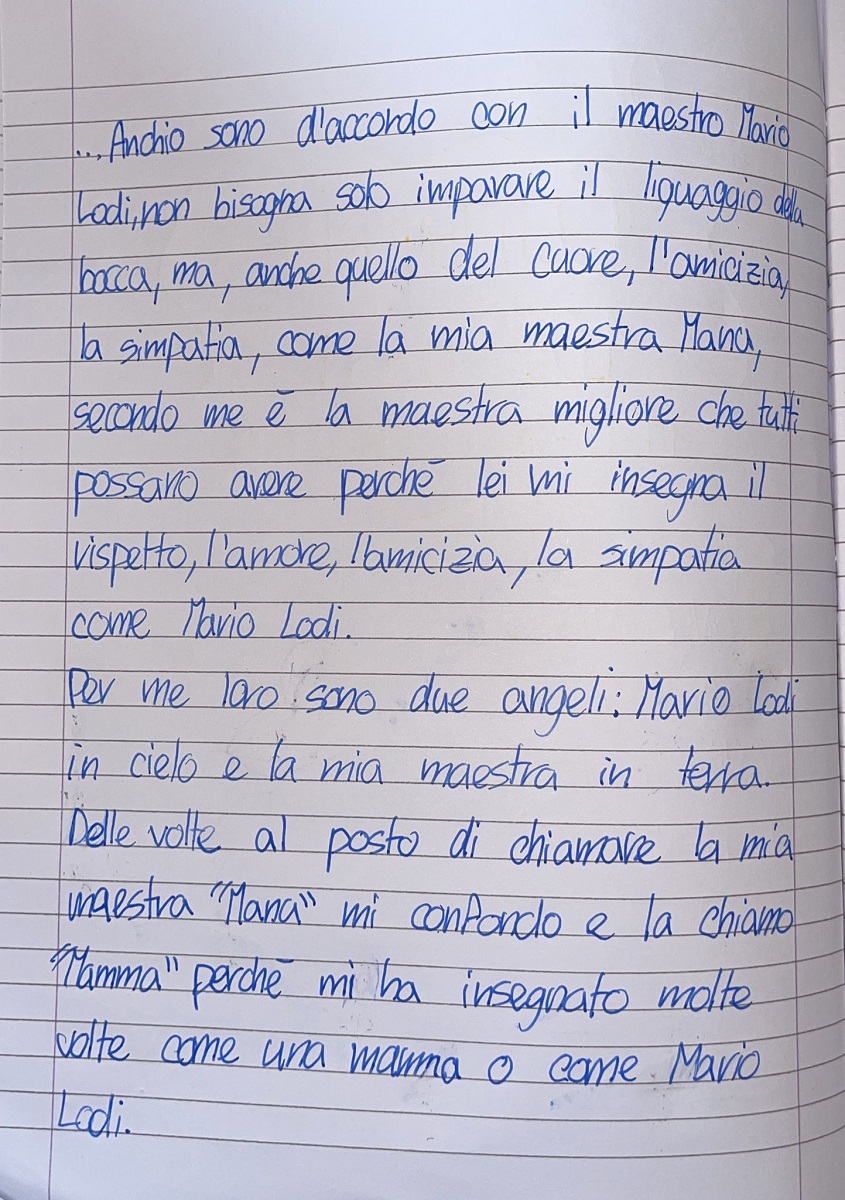 Ma questo è solo uno dei percorsi che portano la storia dell’Istituto Leone XIII ad intrecciarsi con l’opera – nel senso più ampio – di Mario Lodi. Altri si potrebbero raccontare, dalla attenzione riservata dalla maestra Luisa Ghezzi, negli anni in cui fu insegnante al Leone, all’idea di scuola di Lodi, alla viva attenzione e ispirazione a Mario Lodi che i maestri e le maestre leoniane nutrono oggi, nel loro lavoro quotidiano.