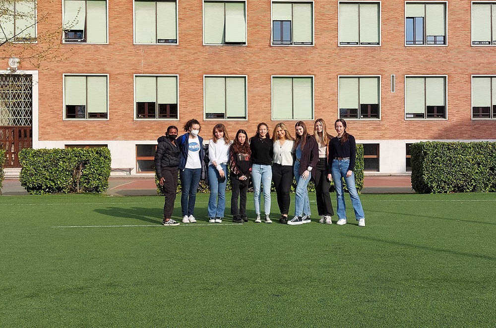 Le studentesse della Oakland Catholic High School di Pittsburgh con le compagne di scambio leoniane nel cortile d’Istituto.