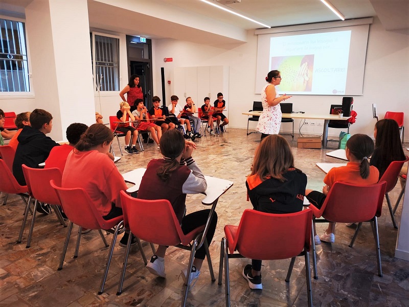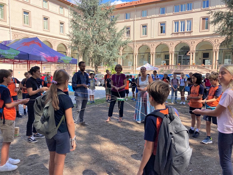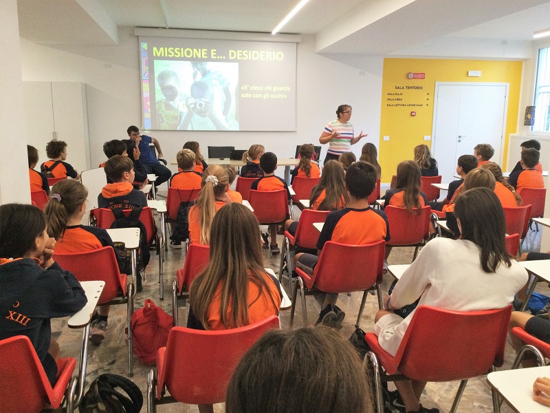 Ma mercoledì 14 ecco partire le vere attività di accoglienza e conoscenza: esercizi di team building, disegni e schede di presentazione, ma soprattutto il tour guidato della scuola. Una vera sorpresa scoprire non solo quant’è grande, ma quali e quanti spazi offre all’esperienza quotidiana di una prima media. Dalle aule speciali ai laboratori, dagli spogliatoi ai campi sportivi, sino al refettorio e alle palestre. Un vero e proprio open day in miniatura, alla conquista del proprio territorio.