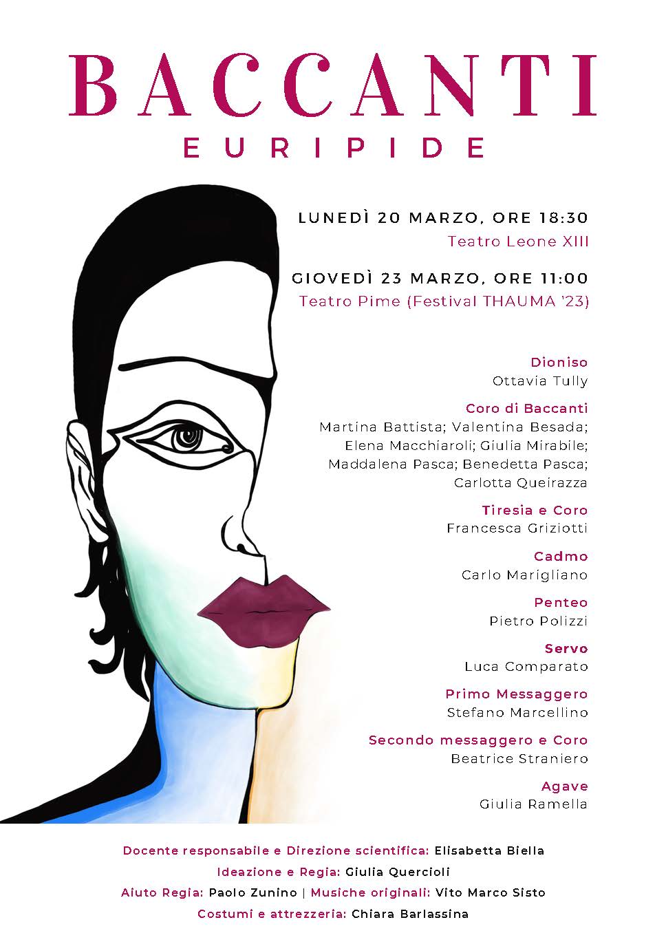 Oggi, lunedì 20 marzo, alle ore 18.30, presso l’Auditorium di Istituto, il “Progetto Teatro Antico: Facciamo Teatro” vi invita a una serata tutta leoniana con la prova generale dello spettacolo preparato durante quest’anno scolastico: “Baccanti” di Euripide, un’opera di grande intensità, che coinvolge l’essenza universale dell’essere umano.