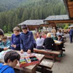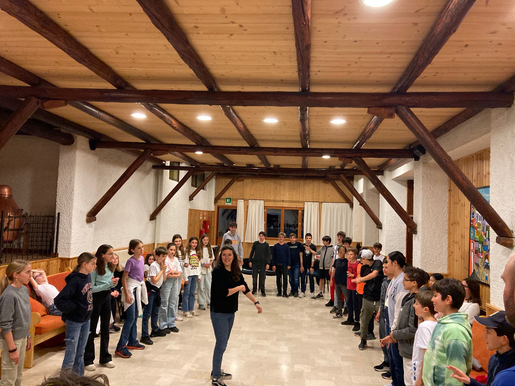 Le giornate a Spiazzi prevedono un’alternanza di attività di movimento nell’area intorno alla struttura (camminate, incontri con animatori del posto, parco sospeso, ecc.) e di spazi di lavoro suddivisi per classi.