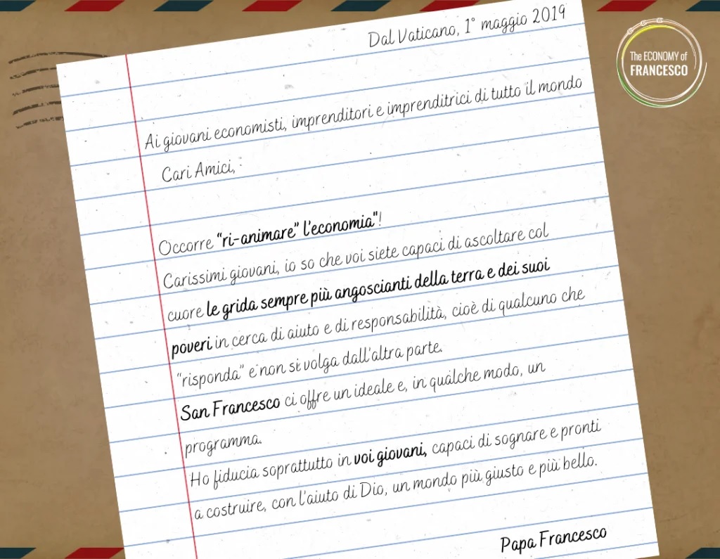 Ma l’incontro più bello degli ultimi anni che mi ha mostrato il volto vero dell’economia è stato quello con il gruppo Economy of Francesco, che è innanzitutto una comunità internazionale, 3000 persone da 120 Paesi diversi: imprenditori, economisti e change makers (chi elabora un pensiero economico e chi lo mette a terra ). È un insieme di chiamate personali che sono diventate una chiamata sociale. EoF mi ha permesso di capire che c’erano altri giovani come me che insieme a me volevano disegnare un’economia che partisse dall’incontro con gli ultimi. La missione che ci ha lasciato il Papa è trasformare questo sistema economico che sta fallendo – e che stia fallendo lo vediamo anche solo dal fatto che passiamo da una crisi economica a un’altra. Per trasformarlo, papa Francesco ci ha lasciato due paradigmi in due encicliche fondamentali: quella sull’ecologia integrale e quella sull’amicizia sociale, o in termini socio-economici, la cooperazione tra tutti gli attori di una società.
