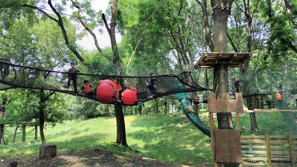 Arrampicati con tanto di imbragature e moschettoni, gli alunni si sono destreggiati nei vari percorsi rialzati, concludendo con un tuffo nel vuoto… con la carrucola!