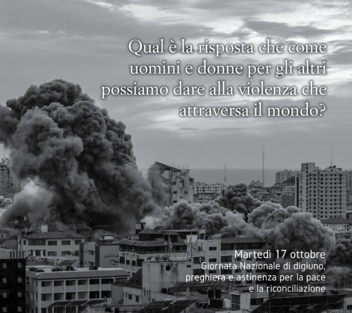 La Conferenza Episcopale Italiana ci suggerisce una modalità, avendo indetto per domani, martedì 17 ottobre, una giornata di digiuno, preghiera e astinenza per la pace e la riconciliazione, a cui invitare tutti i credenti in questo difficile momento.