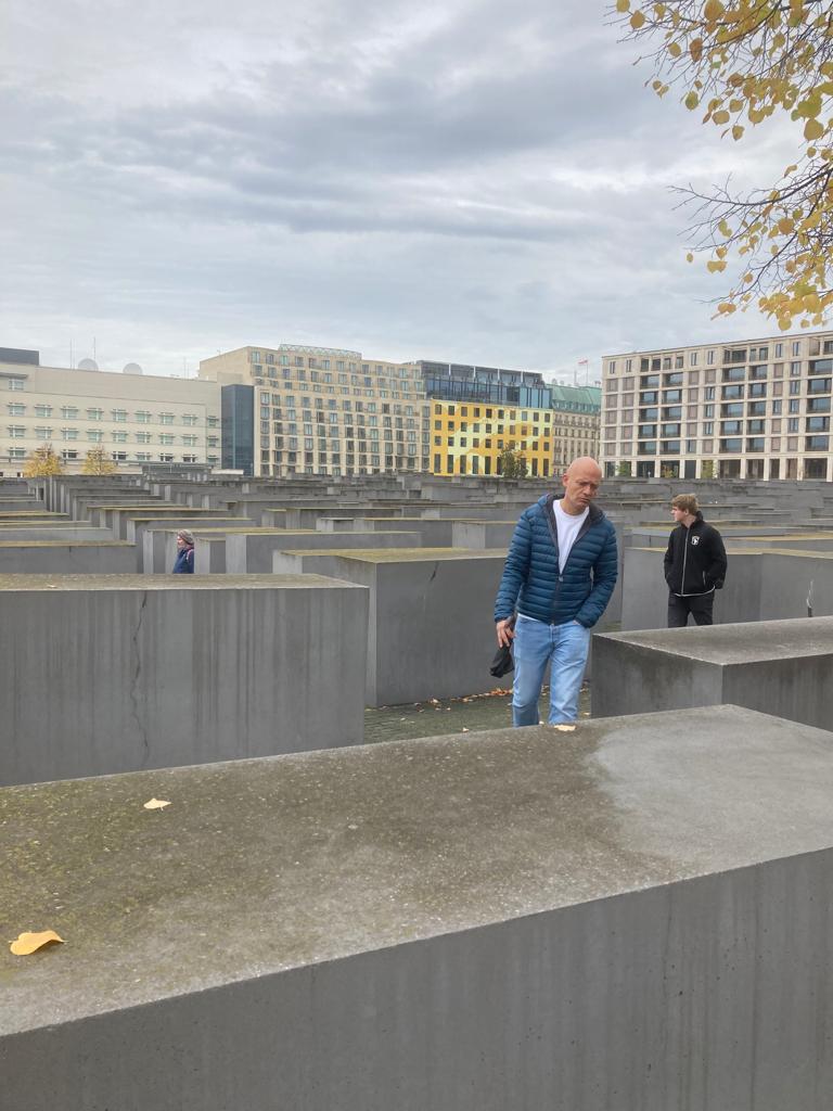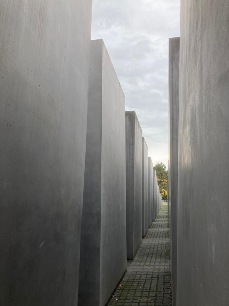 Inoltre, abbiamo visto con occhi commossi il memoriale dedicato ai milioni di Ebrei assassinati dalla follia omicida nazista. È un campo costituito da 2711 stele, apparentemente della stessa altezza, in realtà diverse, e una volta che ci si addentra tra di esse si rimane disorientati. È stato così pensato e voluto: l’intero complesso intende infatti rappresentare un sistema in teoria perfettamente ordinato, che però fa perdere il contatto con la realtà e l’umanità, metafora di quanto accaduto durante il nazismo.