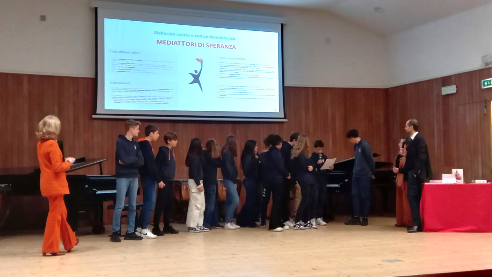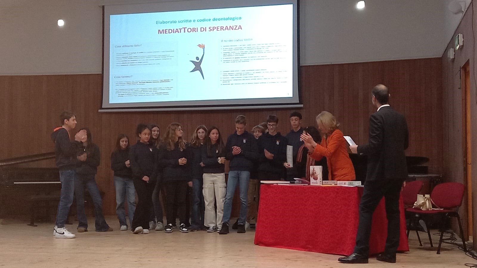 Un gruppo di studenti di Terza Media – guidati dalla prof.ssa Gaia De Vecchi – ha presentato un progetto di “mediazione tra pari”, da offrire a scuola, intitolato “mediatTori di speranza”. Il progetto ha meritato il secondo posto. Proviamo a capirne di più intervistando i ragazzi protagonisti: