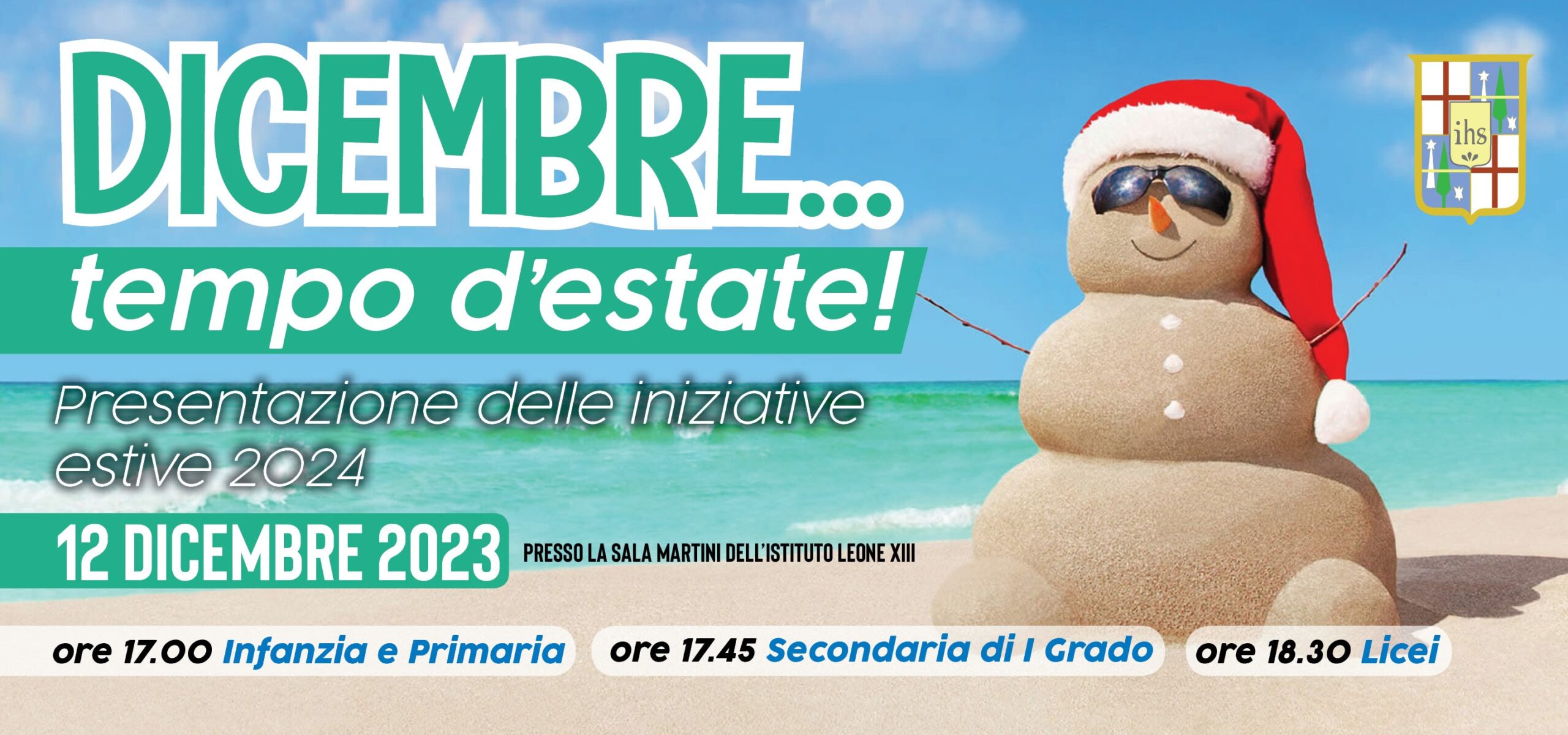 Martedì 12 dicembre, presso la Sala Martini del nostro Istituto, verranno presentate alle famiglie leoniane le proposte estive 2024, secondo il seguente programma: