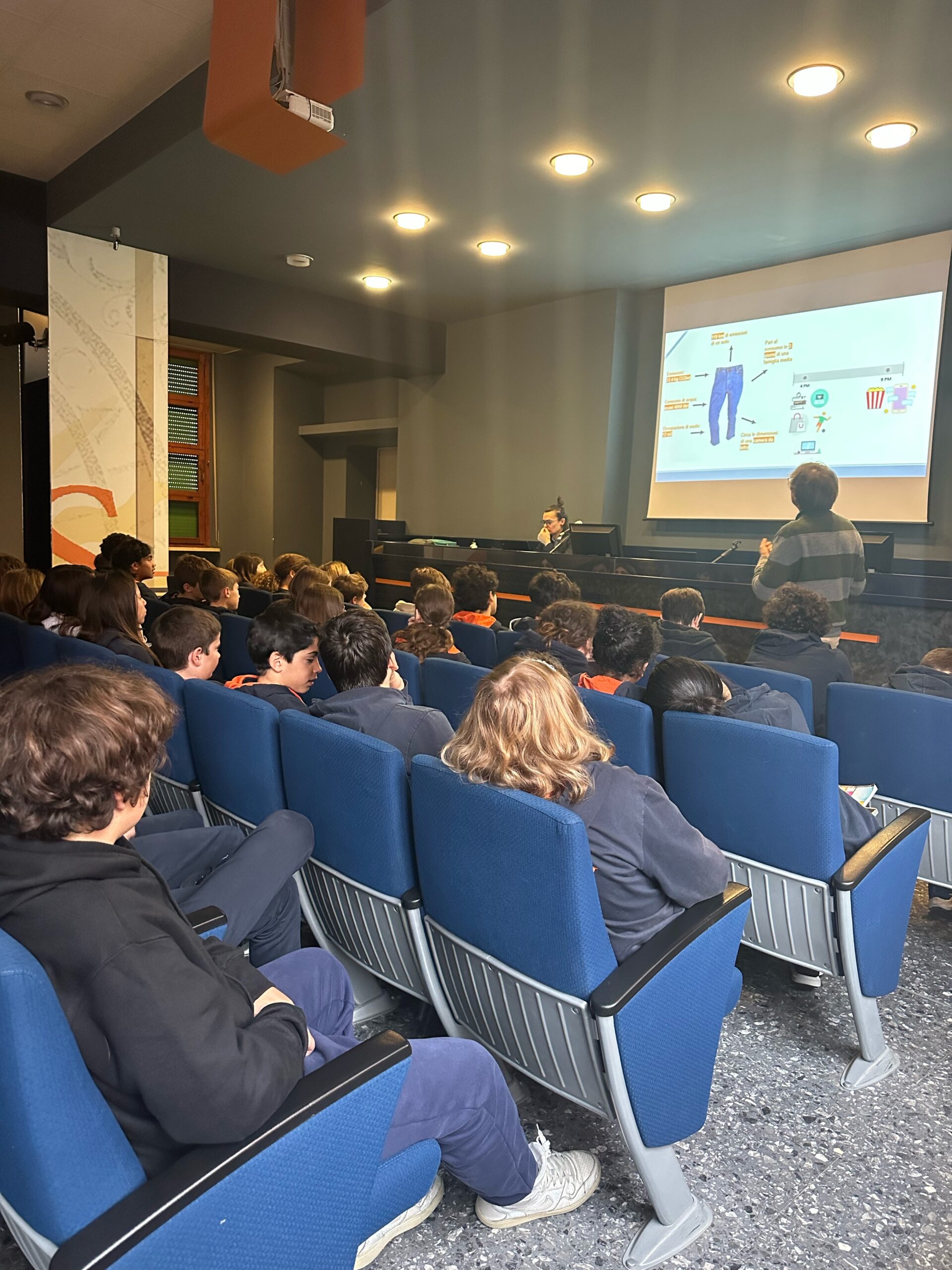 Nel secondo, dopo un approfondimento sulle varie fonti di energia rinnovabili e sull’economia circolare, i ragazzi hanno avuto la possibilità di calcolare la loro “impronta ecologica”, ovvero la quantità simbolica di pianeti che sarebbero necessari per sostenere tutta la popolazione mondiale con lo stesso stile di vita. Nel 2020 l’umanità ha consumato le risorse pari a quelle disponibili in 1,6 pianeti. I ragazzi, dopo un dettagliato quiz, hanno visto comparire sui loro dispositivi numeri ben più alti, segno che tutto ciò che a loro sembra naturale, come vivere in condomini fatti di cemento o prendere l’aereo più volte all’anno, non sia così scontato e sostenibile.