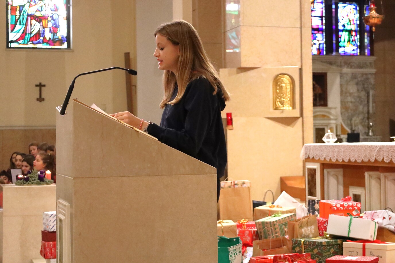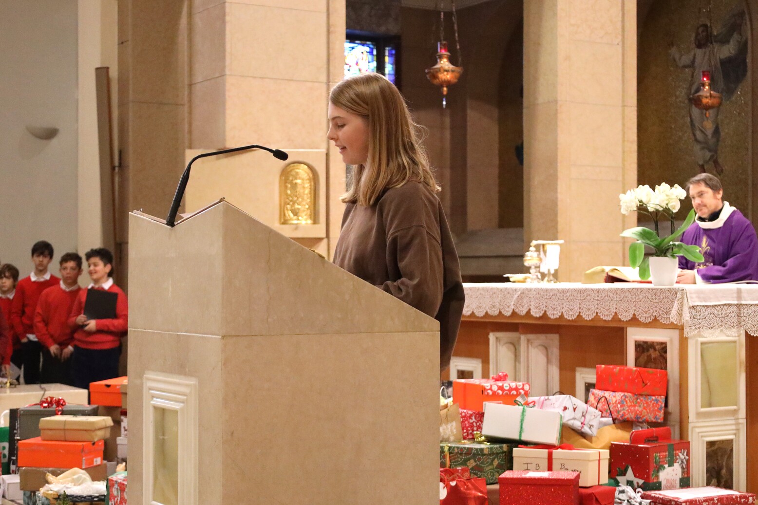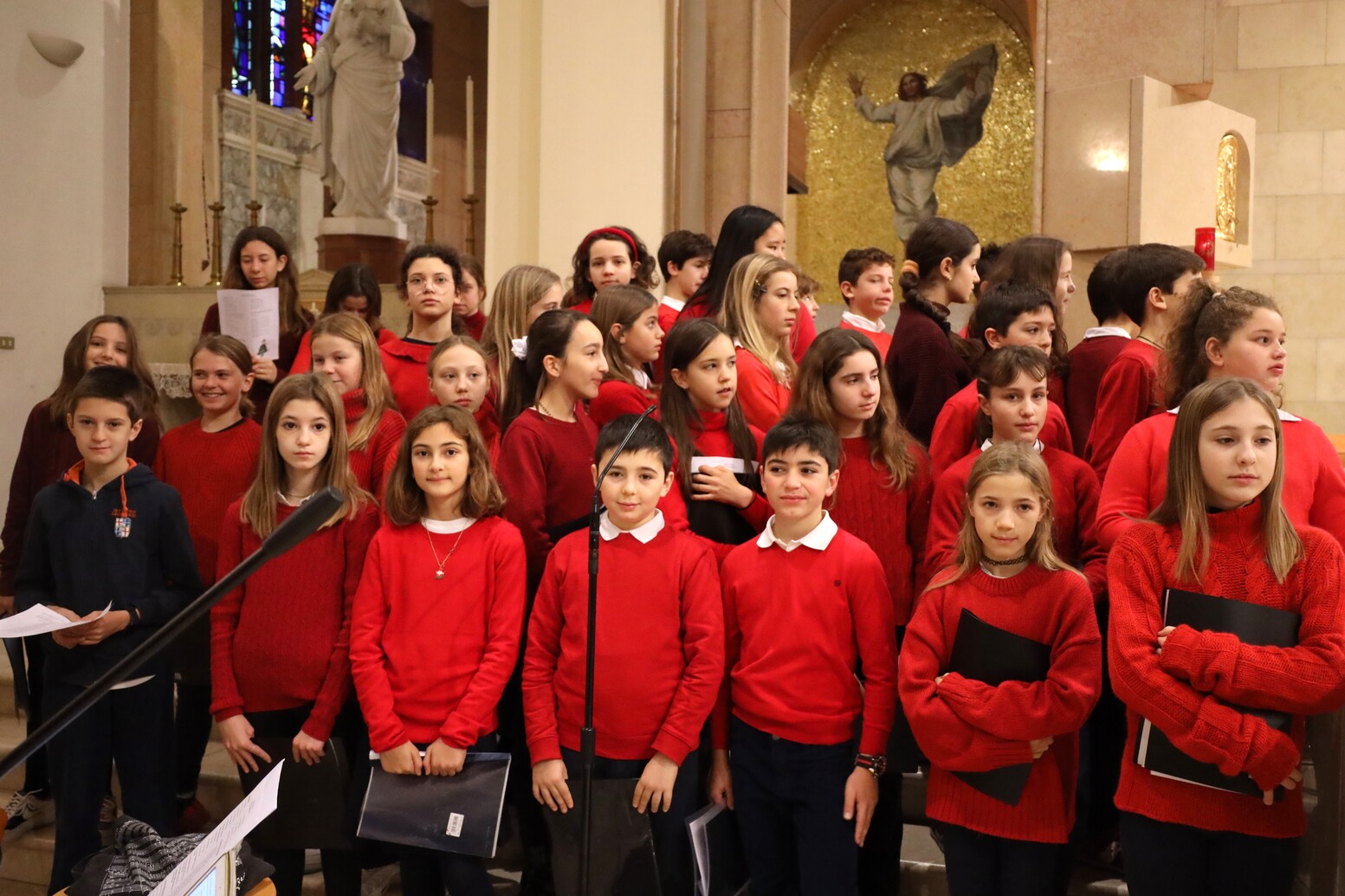 Nella mattinata di oggi si è celebrata la tradizionale Messa per le festività natalizie della Scuola Secondaria di I Grado. Nella chiesa gremita dagli studenti e da genitori e parenti spiccava l’immagine del Bambin Gesù, collocato davanti all’altare, circondato dai doni per i più bisognosi raccolti in questi giorni.