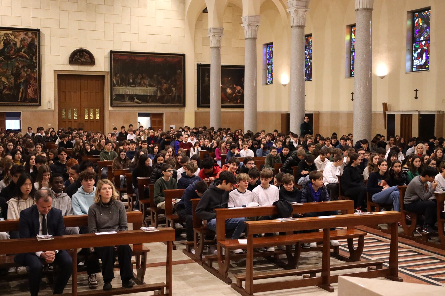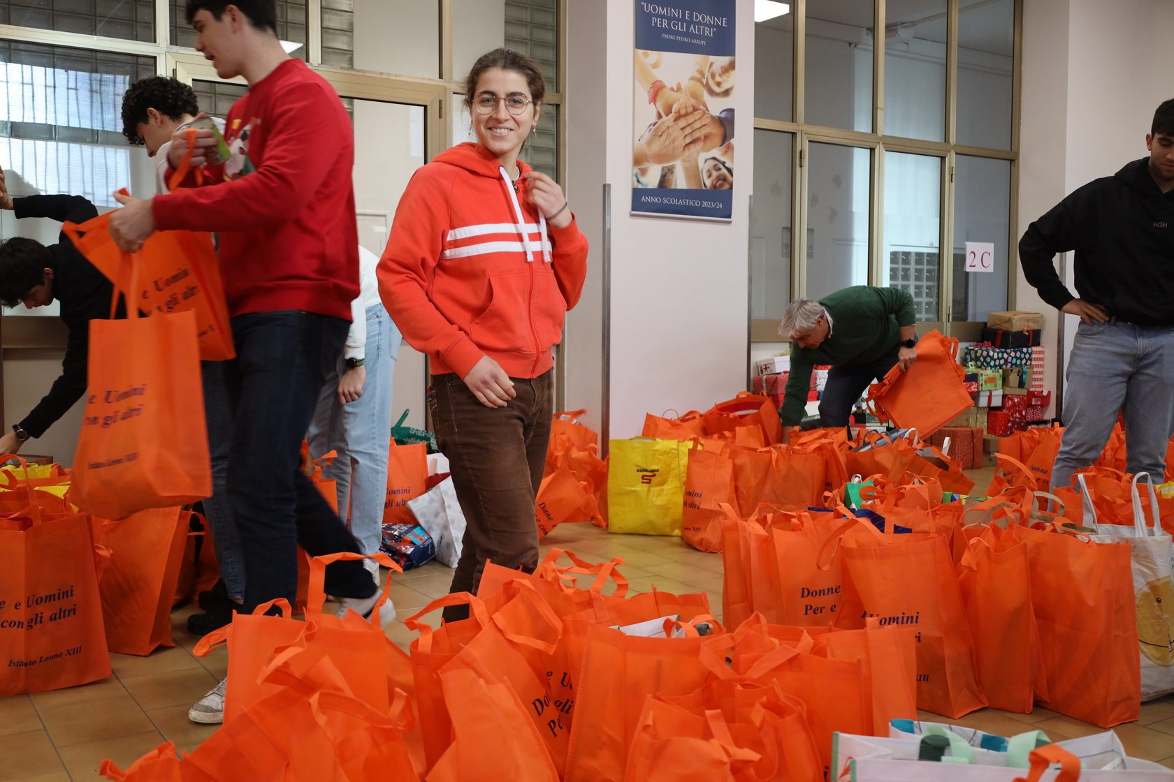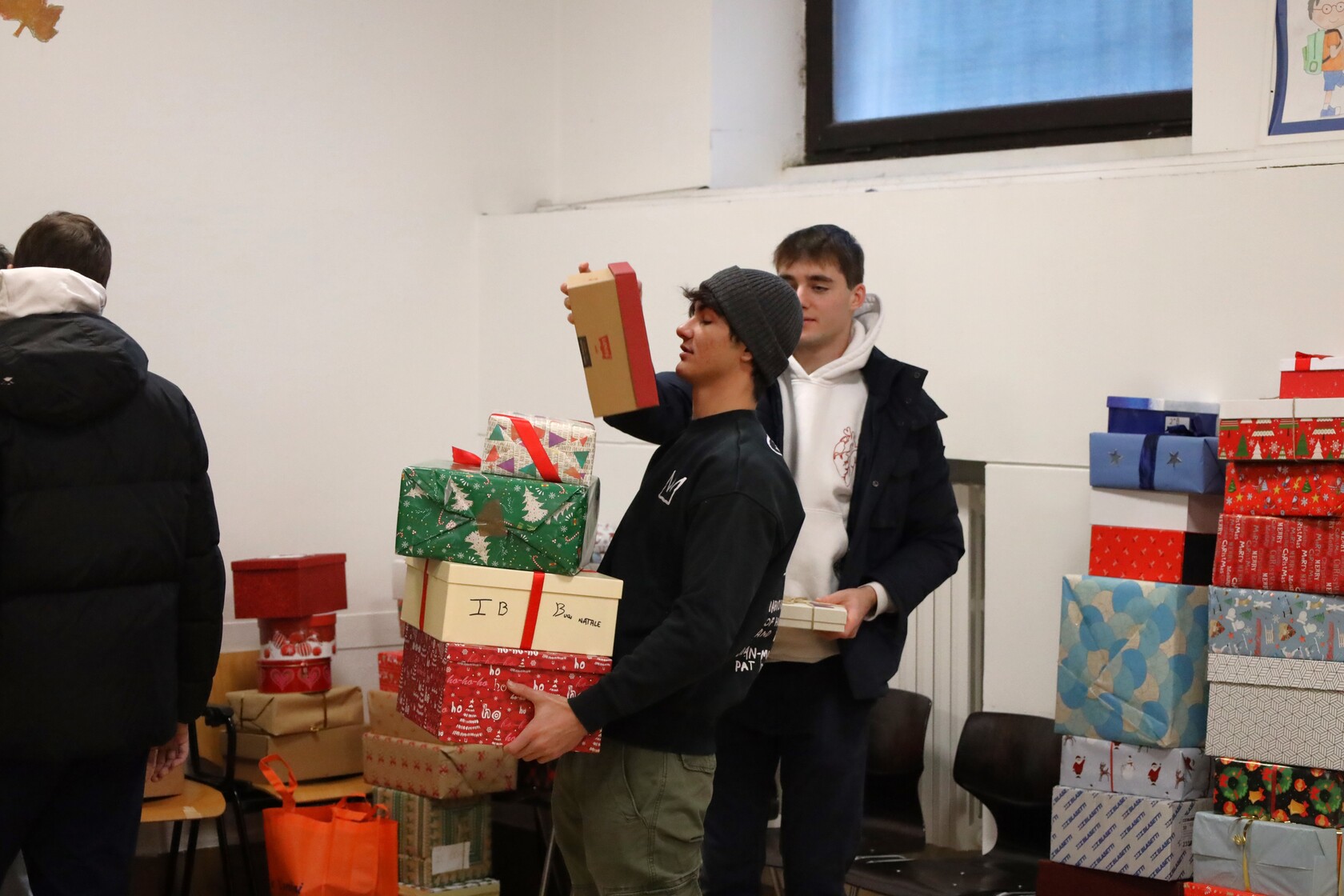 E ancora è stato un dono questo ultimo giorno di scuola nel bellissimo clima di attenzione e di unione che ha contraddistinto la Messa dei Licei, celebrata oggi da p. Alessandro Viano SJ assieme a p. Robert Popa e a p. Nicola Gobbi SJ, e nelle iniziative di volontariato e di solidarietà che, in tutti i plessi, hanno animato questo tempo di Avvento: con l’iniziativa del Rigiocattolo, in collaborazione con la Comunità di S. Egidio, animata dagli alunni della Scuola Primaria e della Scuola Secondaria di I Grado; con le Scatole della gentilezza, donate al C.A.V. – Centro di Aiuto alla Vita Mangiagalli dai bimbi della Scuola dell’Infanzia assieme ai ragazzi e alle ragazzi delle classi Terze della Scuola Secondaria di I Grado, mentre i compagni delle classi Prime e Seconde le hanno raccolte e consegnate alle parrocchie del Corpus Domini e di sant’Antonio per dare un piccolo conforto alle persone senza fissa dimora, che in questo periodo dell’anno, con le sue temperature rigide, rischiano di essere ancora più in difficoltà; e infine, con la tradizionale colletta alimentare realizzata dagli studenti dei Licei, che nel corso della mattinata, dopo la Messa, hanno portato insieme ai loro proff. e ai genitori leoniani i generi alimentari raccolti alla Mensa del Corpus Domini in Via Canova.