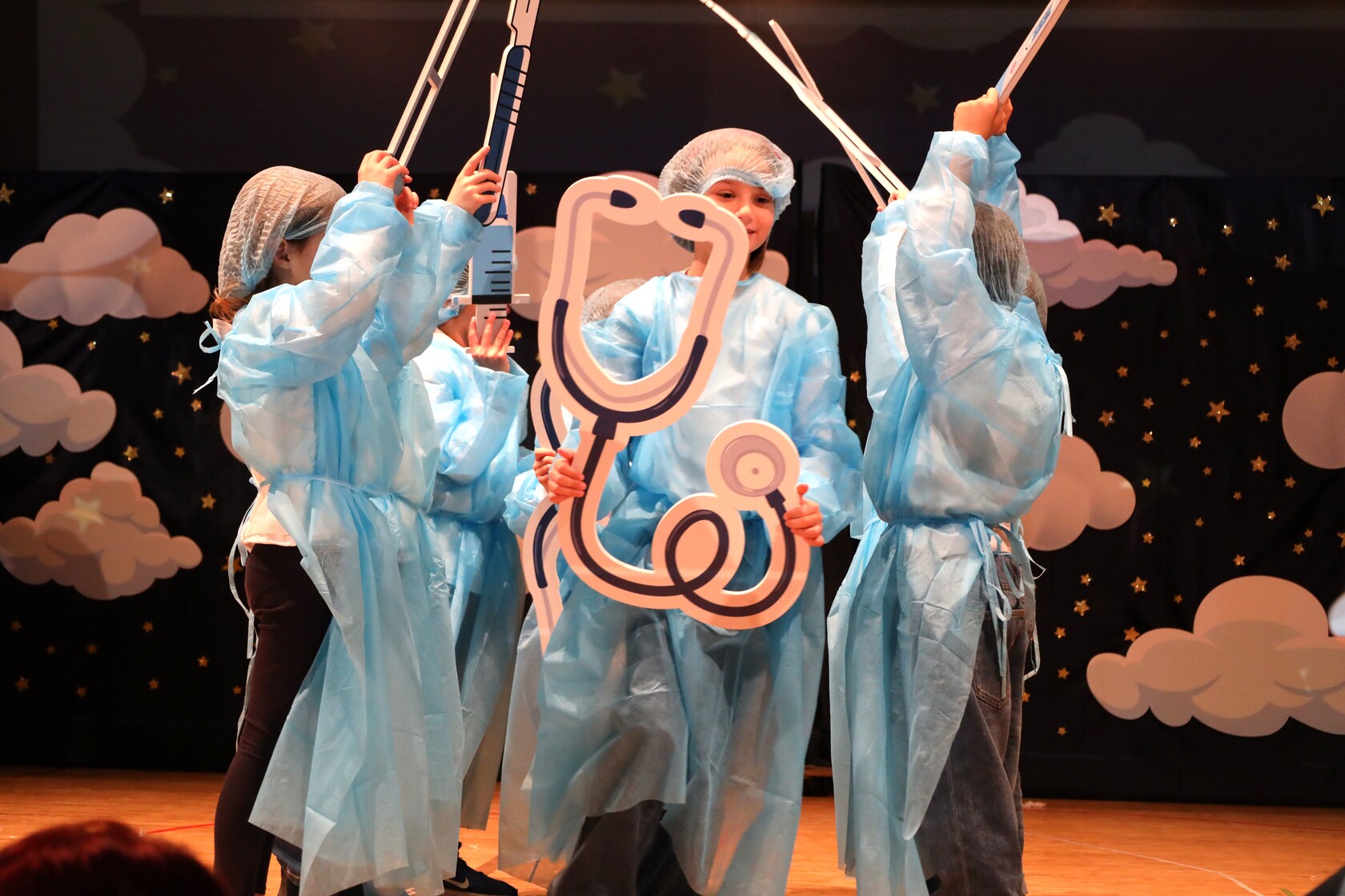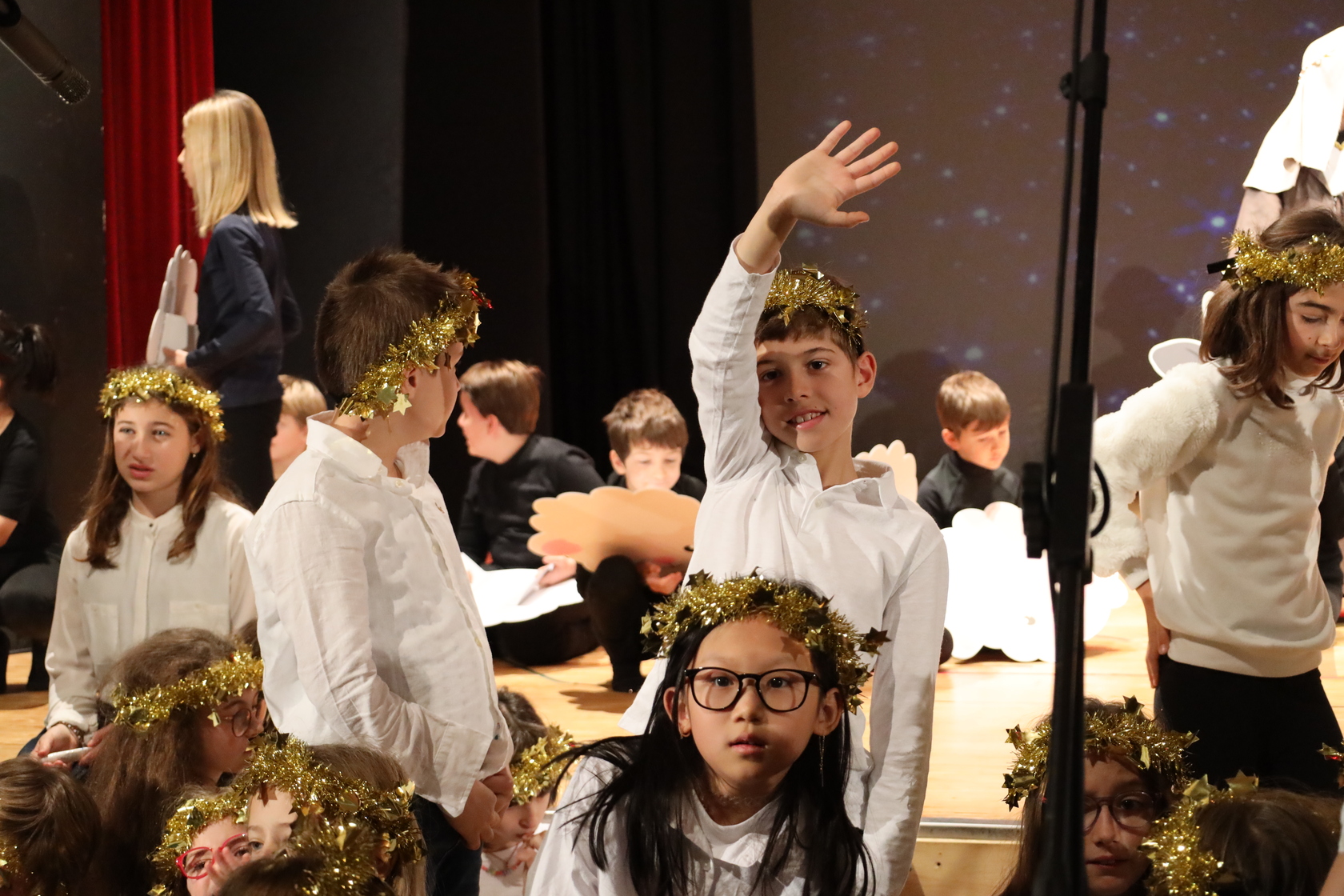 Nella recita della Scuola Primaria, in cui tutte le classi, dalle Prime alla Quinte, hanno teatralizzato (… e musicato!) una prospettiva di cambiamento del mondo, per poterlo guarire dai suoi mali ambientali e sociali.