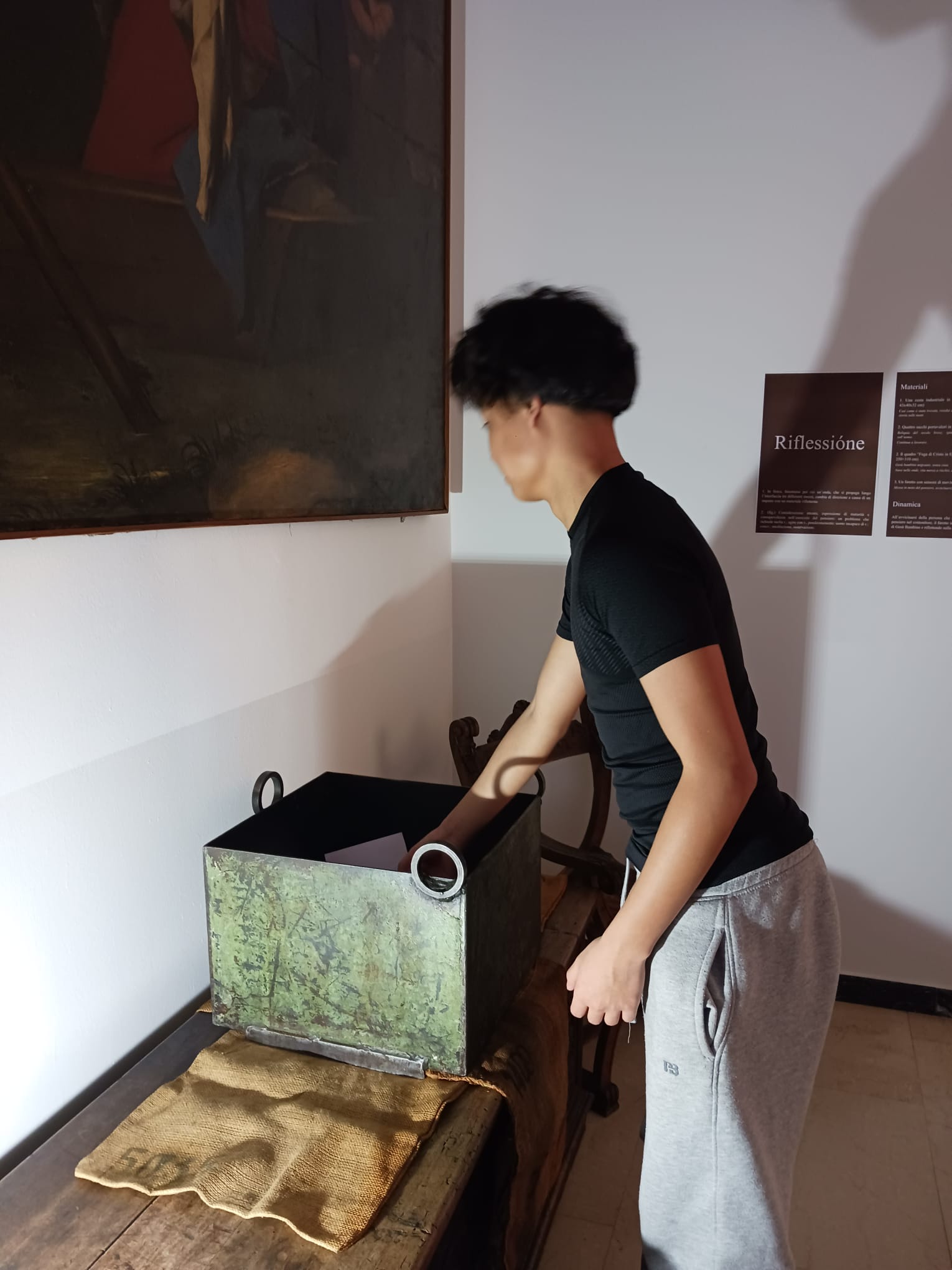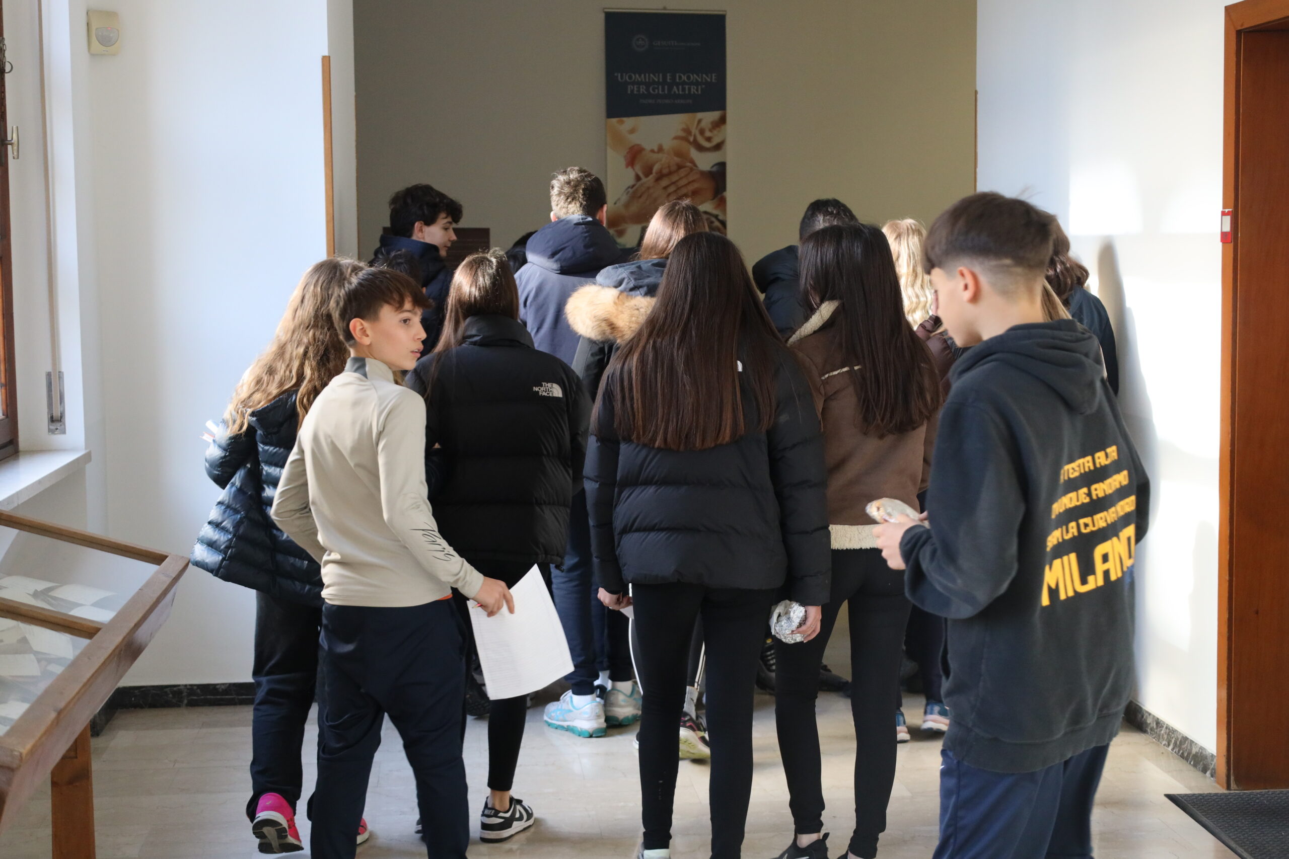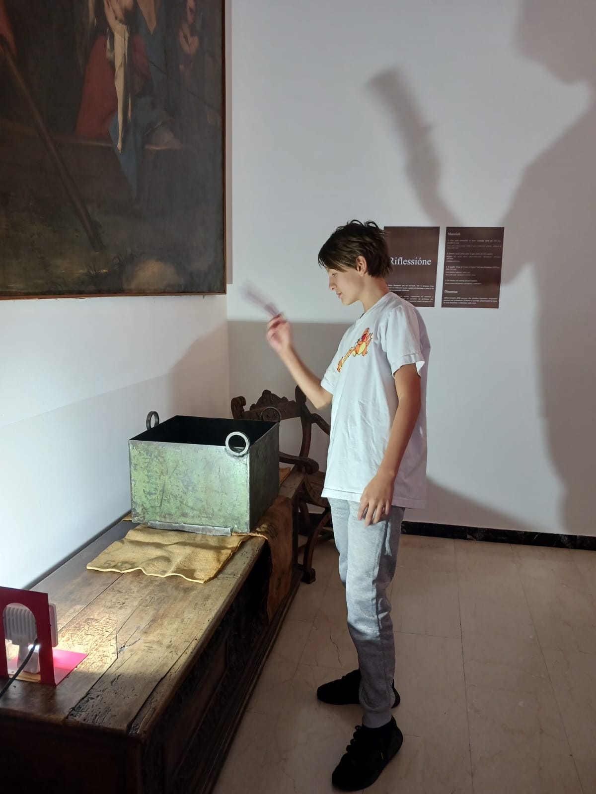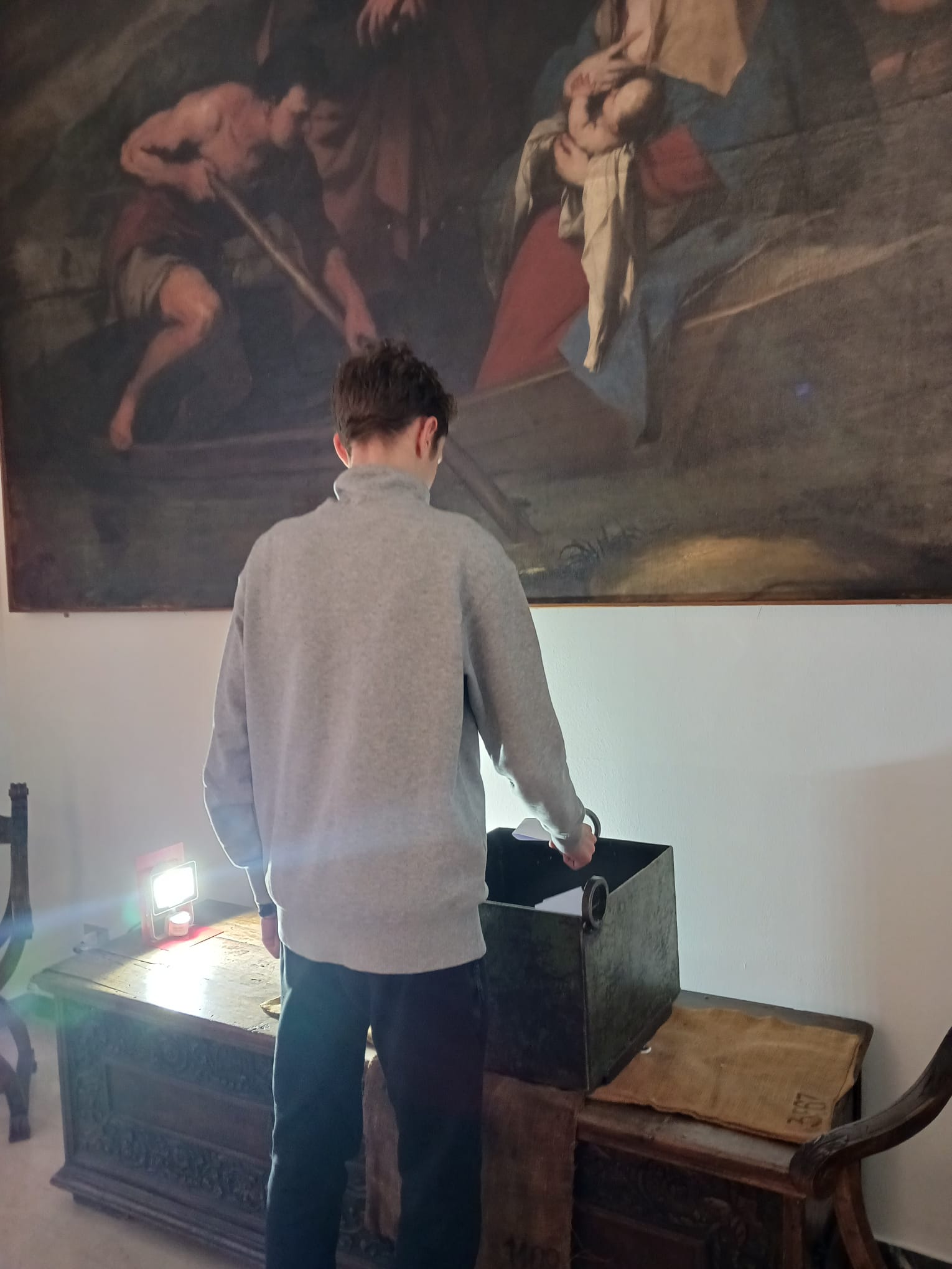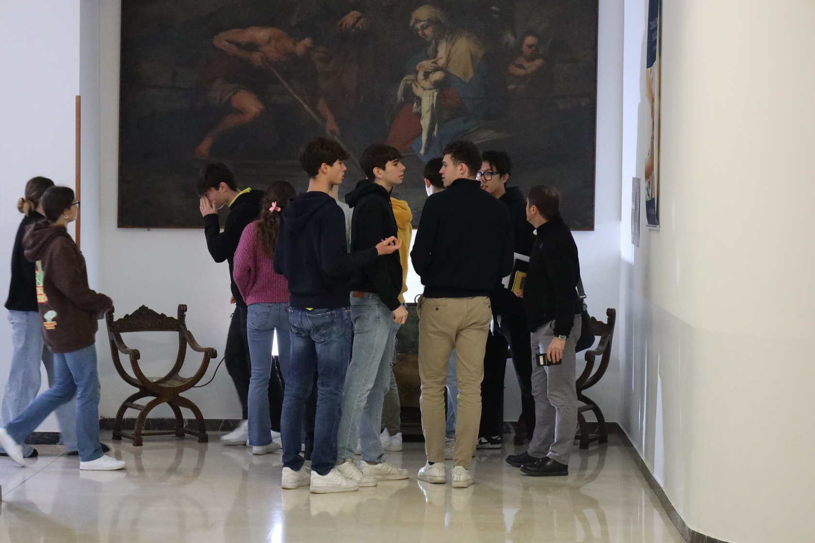 Molte di queste attività sono iniziate nei giorni scorsi e continueranno durante questa settimana, individuando un punto di arrivo ideale nella raccolta dei pensieri elaborati dagli studenti della Primaria, della Secondaria di I Grado e dei Licei, in una vecchia cesta industriale in ferro, posta nel corridoio direzionale, sotto la grande tela di Luca Giordano, Fuga di Cristo in Egitto, in cui vediamo un Gesù Bambino che – perseguitato, minacciato dalle armi, sfollato, senza casa, migrante – sale su una barca e affronta le onde.