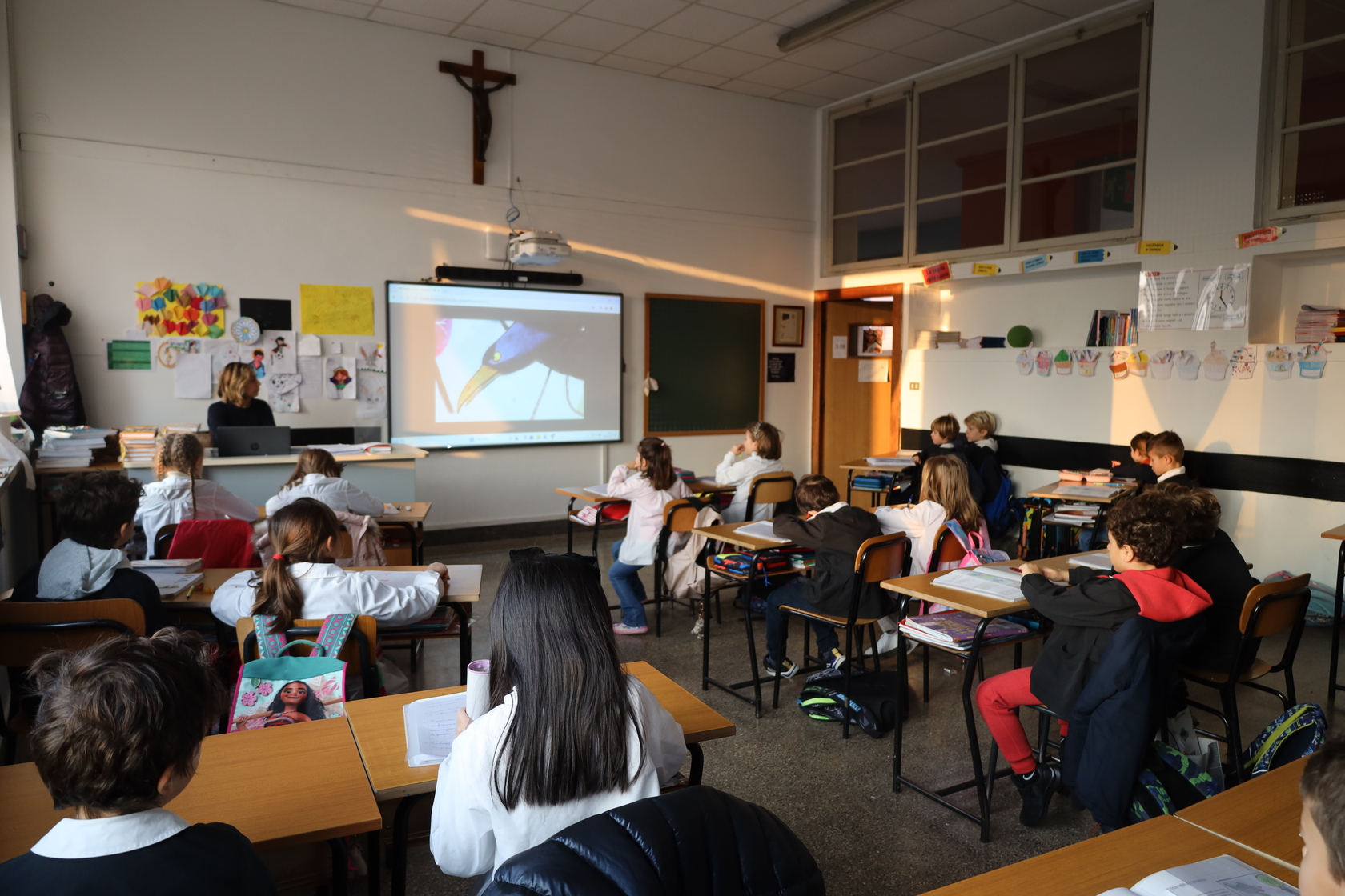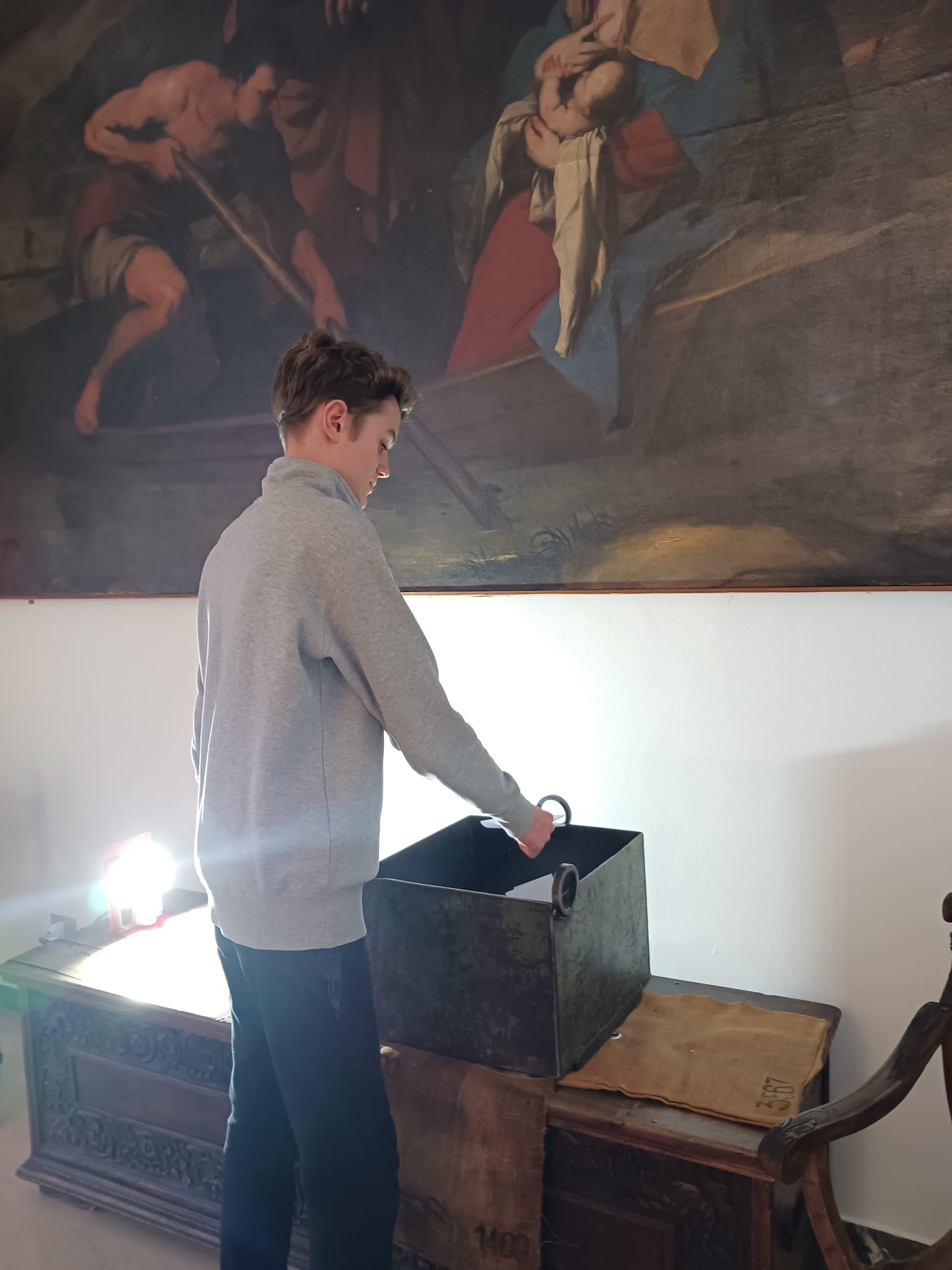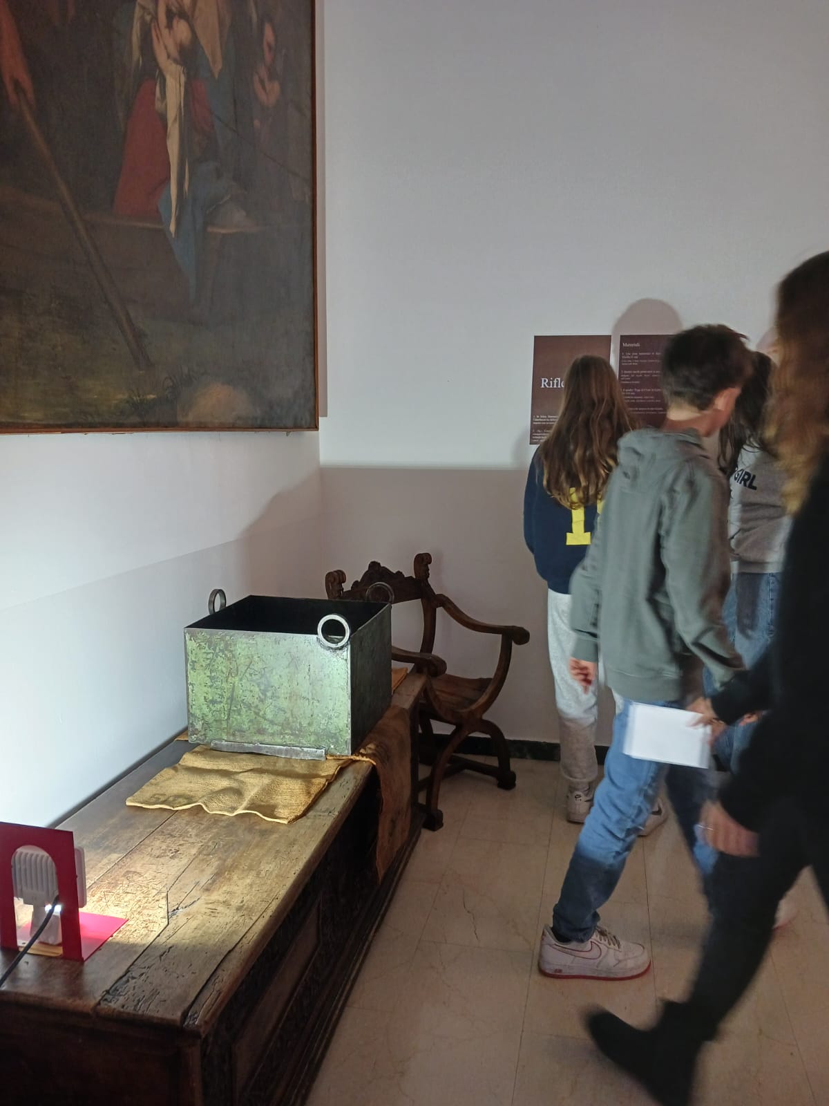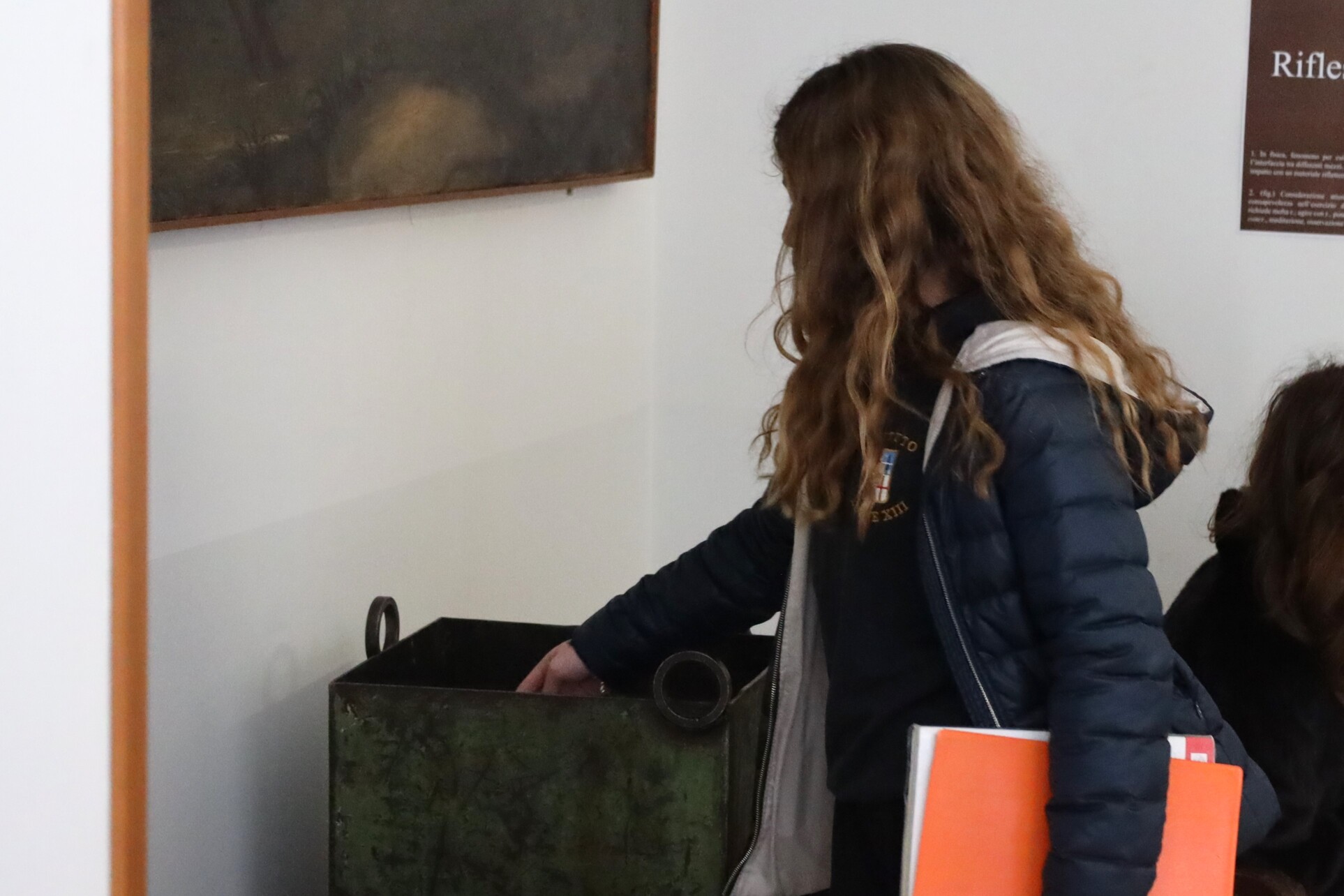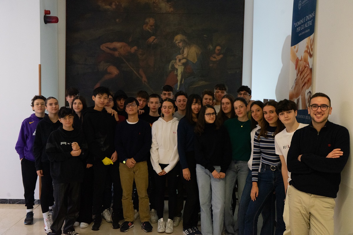 Molte di queste attività sono iniziate nei giorni scorsi e continueranno durante questa settimana, individuando un punto di arrivo ideale nella raccolta dei pensieri elaborati dagli studenti della Primaria, della Secondaria di I Grado e dei Licei, in una vecchia cesta industriale in ferro, posta nel corridoio direzionale, sotto la grande tela di Luca Giordano, Fuga di Cristo in Egitto, in cui vediamo un Gesù Bambino che – perseguitato, minacciato dalle armi, sfollato, senza casa, migrante – sale su una barca e affronta le onde.