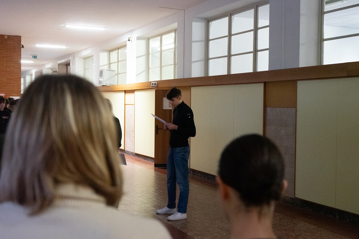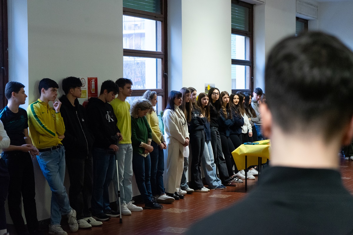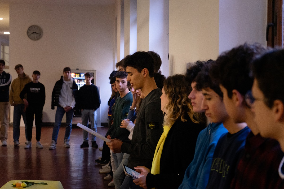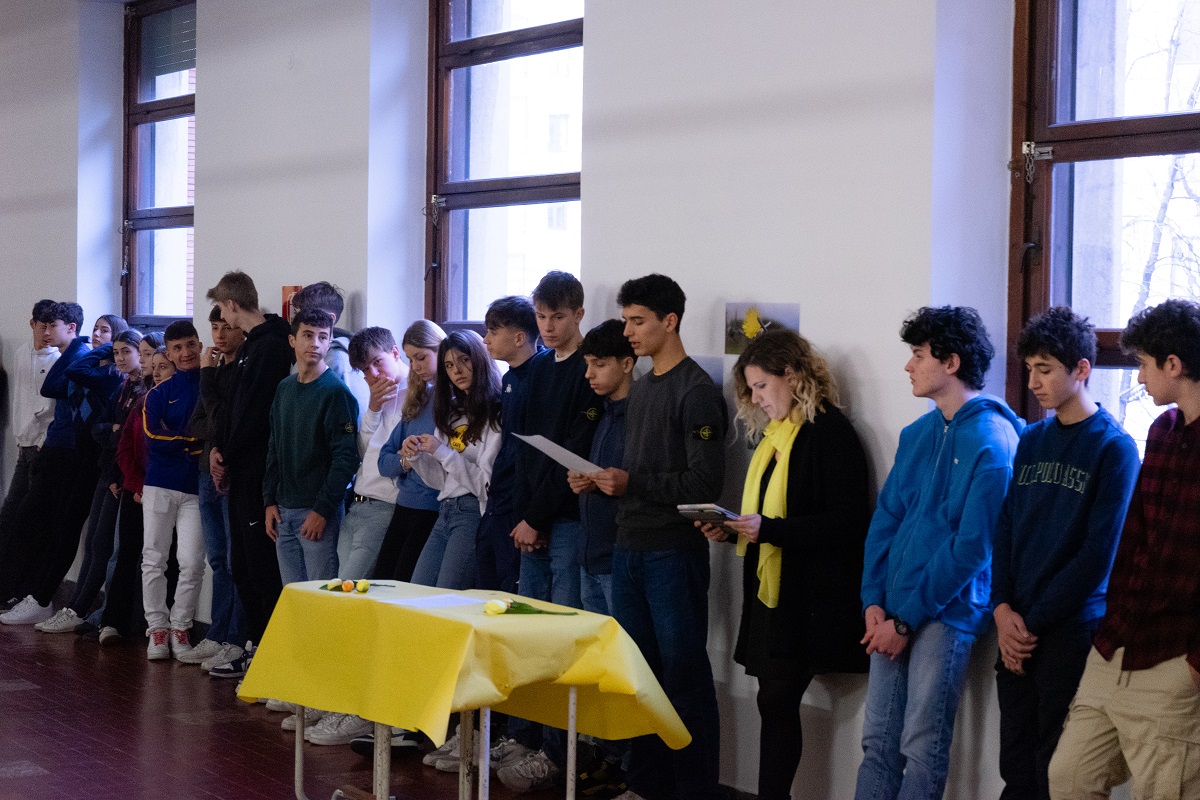 Sempre venerdì 26 si è tenuta invece l’iniziativa degli studenti dei Licei, che per l’occasione hanno indossato un capo d’abbigliamento dal colore giallo – il colore dell’emarginazione e della vergogna, con cui gli ebrei venivano contrassegnati – e si sono riuniti nei corridoi della scuola per osservare un minuto di silenzio e ascoltare la lettura di un testo comune e di alcuni brani di riflessione tratti da testimonianze di sopravvissuti ai lager.