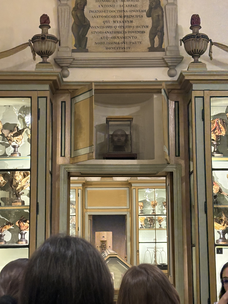 E ancora, la sezione di medicina, nelle sue tre sale tre sale, in cui sono conservati gli strumenti e i preparati che rimandano alla scuola anatomica di Antonio Scarpa (1752-1832), all’attività di Luigi Porta (1800-1875) e di Carlo Forlanini (1847-1918), e alla scuola scientifica fondata da Camillo Golgi (1843-1926), il primo italiano a vincere il premio Nobel per la medicina.