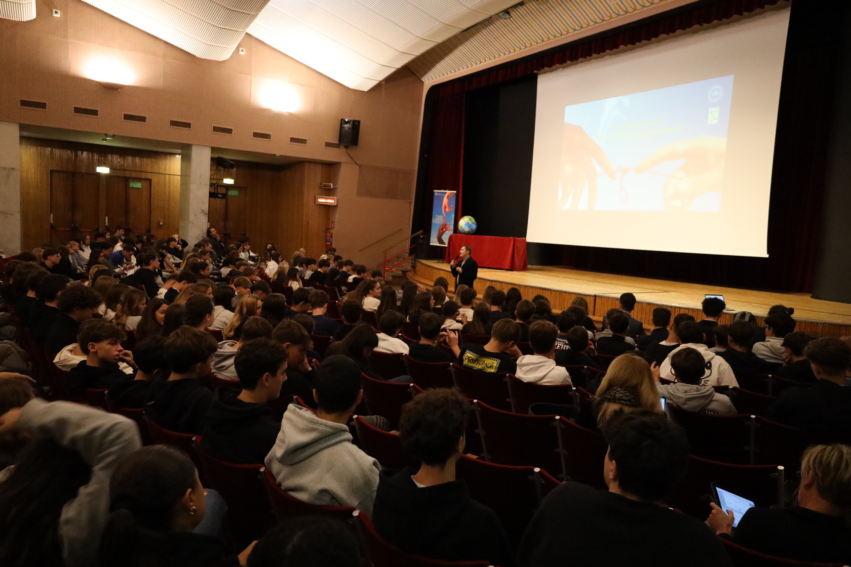La mattinata si è articolata in due momenti, a cui hanno partecipato tutti gli studenti dei Licei, dalle classi Prime alle Quarte – mentre le classi Quinte hanno aderito al progetto per la donazione del sangue proposto da AVIS.