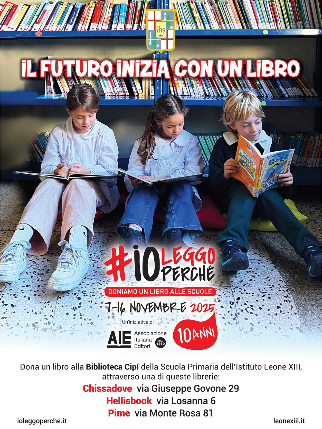 Basterà così acquistare uno o più libri, dicendo al libraio che sono destinati all’Istituto Leone XIII, e al termine dell’iniziativa verranno fatti pervenire alla nostra scuola, arricchendo così il catalogo della Biblioteca “Cipí” della Scuola Primaria.