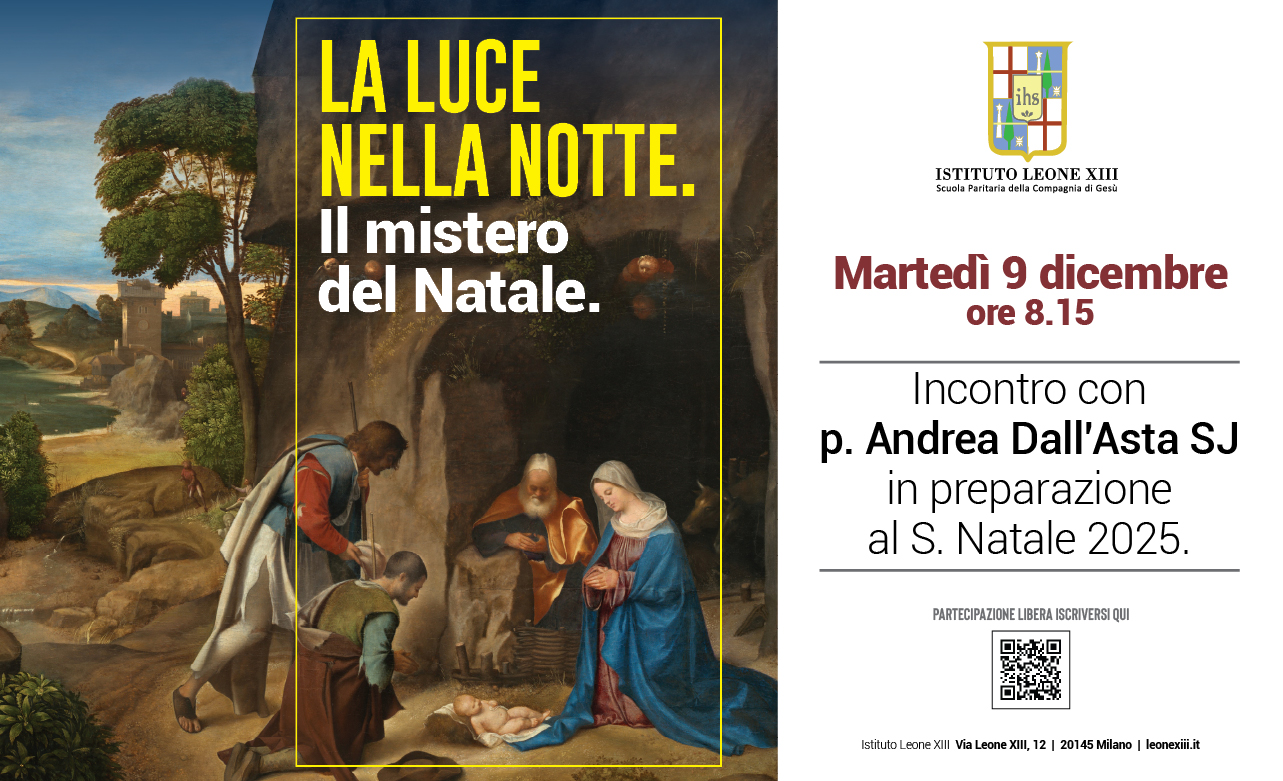 𝗠𝗮𝗿𝘁𝗲𝗱𝗶̀ 𝟵 𝗱𝗶𝗰𝗲𝗺𝗯𝗿𝗲, dalle 8:15 alle 9:15, presso il nostro Istituto, 𝗽𝗮𝗱𝗿𝗲 𝗔𝗻𝗱𝗿𝗲𝗮 𝗗𝗮𝗹𝗹’𝗔𝘀𝘁𝗮 𝗦𝗝 terrà un incontro dal titolo “𝗟𝗮 𝗹𝘂𝗰𝗲 𝗻𝗲𝗹𝗹𝗮 𝗻𝗼𝘁𝘁𝗲. 𝗜𝗹 𝗺𝗶𝘀𝘁𝗲𝗿𝗼 𝗱𝗲𝗹 𝗡𝗮𝘁𝗮𝗹𝗲”.