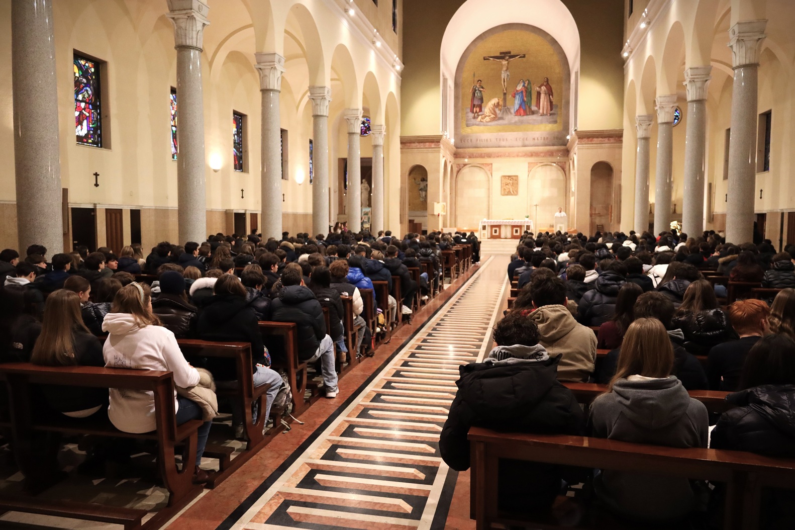 Si è trattato di un tempo di libera partecipazione, prima dell’inizio delle lezioni, che ha visto però la presenza di tantissimi ragazzi e dei loro docenti, fino a gremire tutta la chiesa.