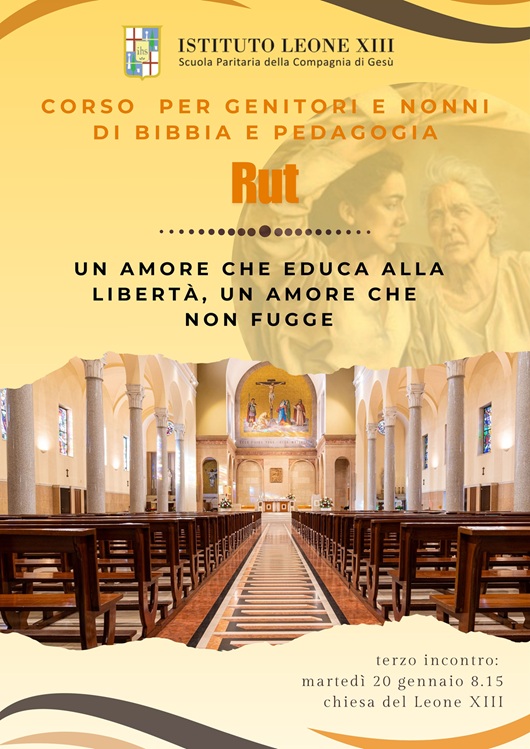 𝗠𝗮𝗿𝘁𝗲𝗱𝗶̀ 𝟮𝟬 𝗴𝗲𝗻𝗻𝗮𝗶𝗼 𝟮𝟬𝟮𝟲, alle ore 8.15, presso la Chiesa d’Istituto, si terrà il terzo incontro del 𝗖𝗼𝗿𝘀𝗼 𝗱𝗶 𝗕𝗶𝗯𝗯𝗶𝗮 𝗲 𝗽𝗲𝗱𝗮𝗴𝗼𝗴𝗶𝗮 𝗽𝗲𝗿 𝗴𝗲𝗻𝗶𝘁𝗼𝗿𝗶 𝗲 𝗻𝗼𝗻𝗻𝗶, dal titolo “Rut: un amore che educa alla libertà, un amore che non fugge”.