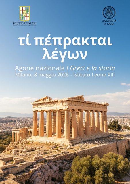 Il Liceo Classico dell’Istituto Leone XIII di Milano, in collaborazione con il Dipartimento di Studi Umanistici dell’Università degli Studi di Pavia, indice per l’a.s. 2025/26 la terza edizione dell’agone nazionale I Greci e la storia – τί πέπρακται λέγων, gara di traduzione dal greco antico all’italiano rivolta agli studenti del secondo e terzo anno di Liceo Classico iscritti negli istituti secondari statali e paritari del territorio nazionale.