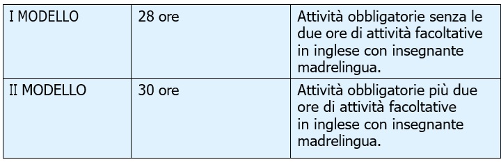 Al fine di realizzare la personalizzazione dei piani di studi, le attività si articolano in orario obbligatorio e orario facoltativo, prevedendo due modelli orari a scelta delle famiglie: